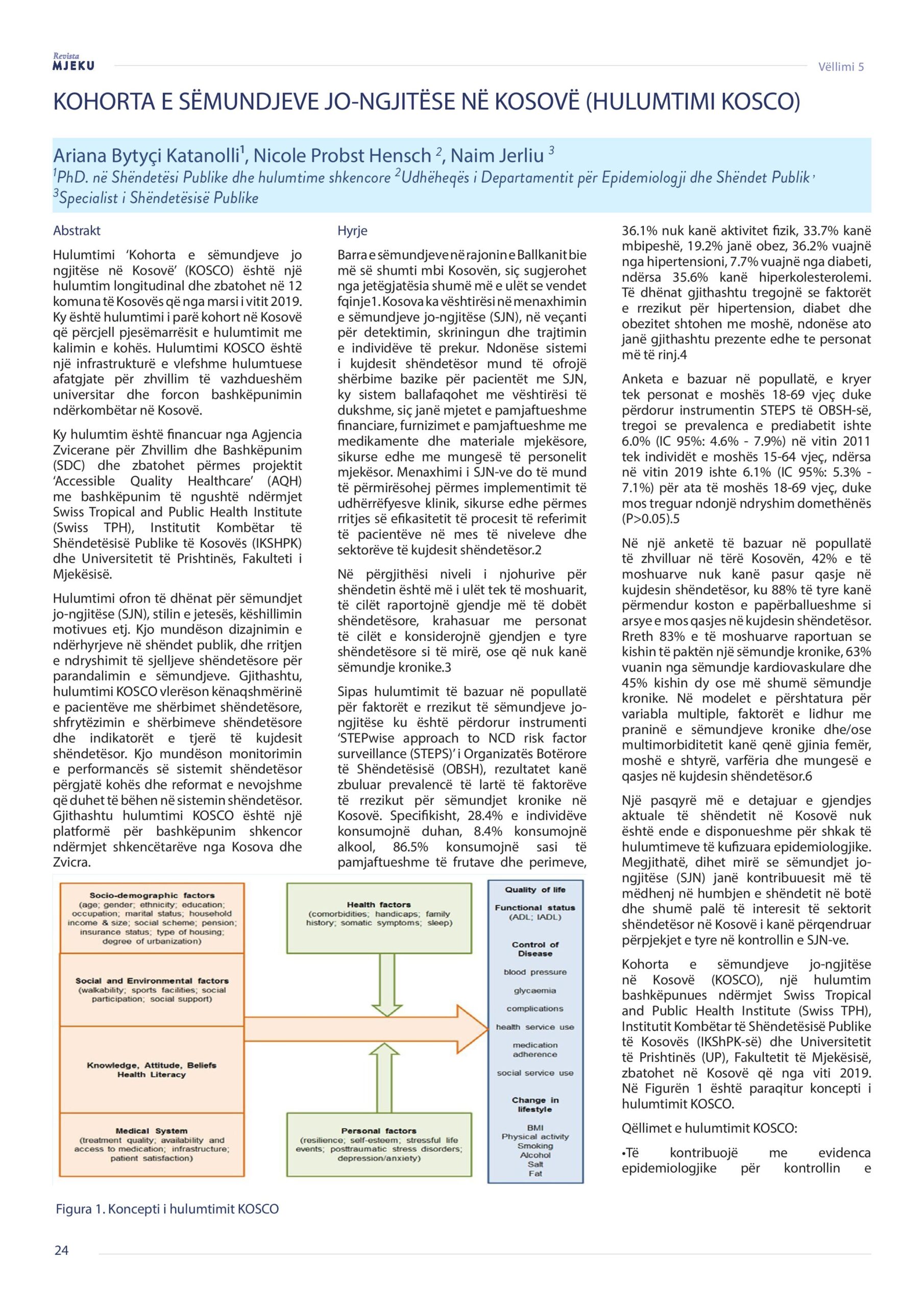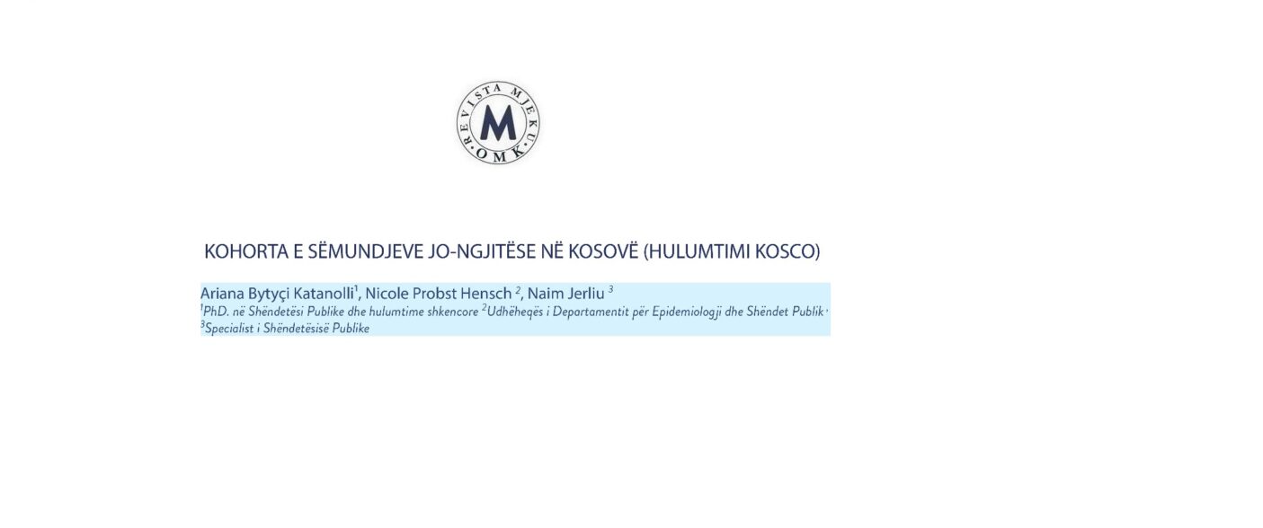Ariana Bytyçi- Katanolli, Nicole Probst Hensch dhe Naim Jerliu – KOHORTA E SËMUNDJEVE JO-NGJITËSE NË KOSOVË (HULUMTIMI KOSCO)