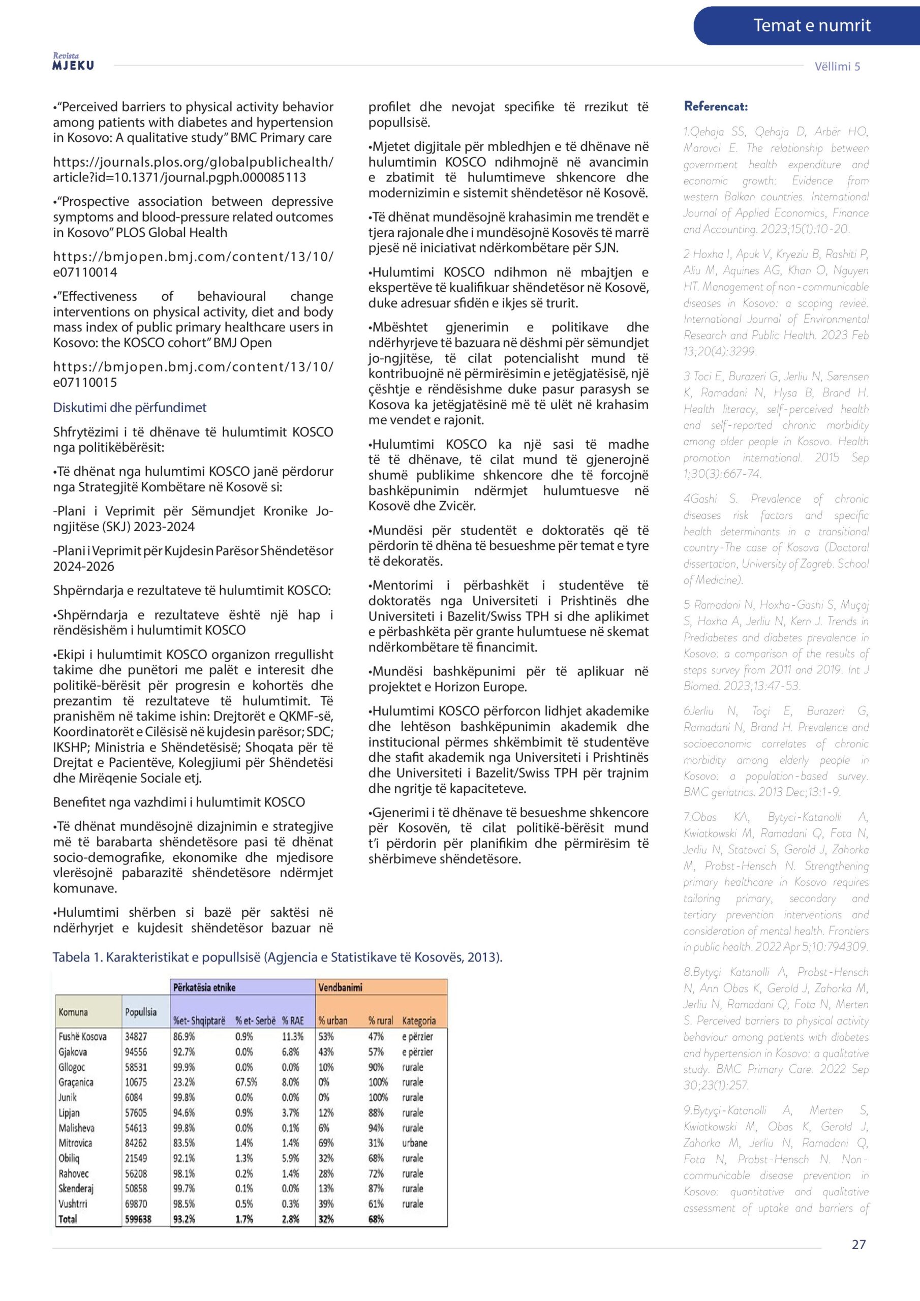 Revista Mjeku, Vëllimi 5, Numër 2; Kohorta e sëmundjeve jo-ngjitëse në Kosovë (Hulumtimi KOSCO), artikull nga Ariana Bytyçi- Katanolli, Nicole Probst Hensch dhe Naim Jerliu.