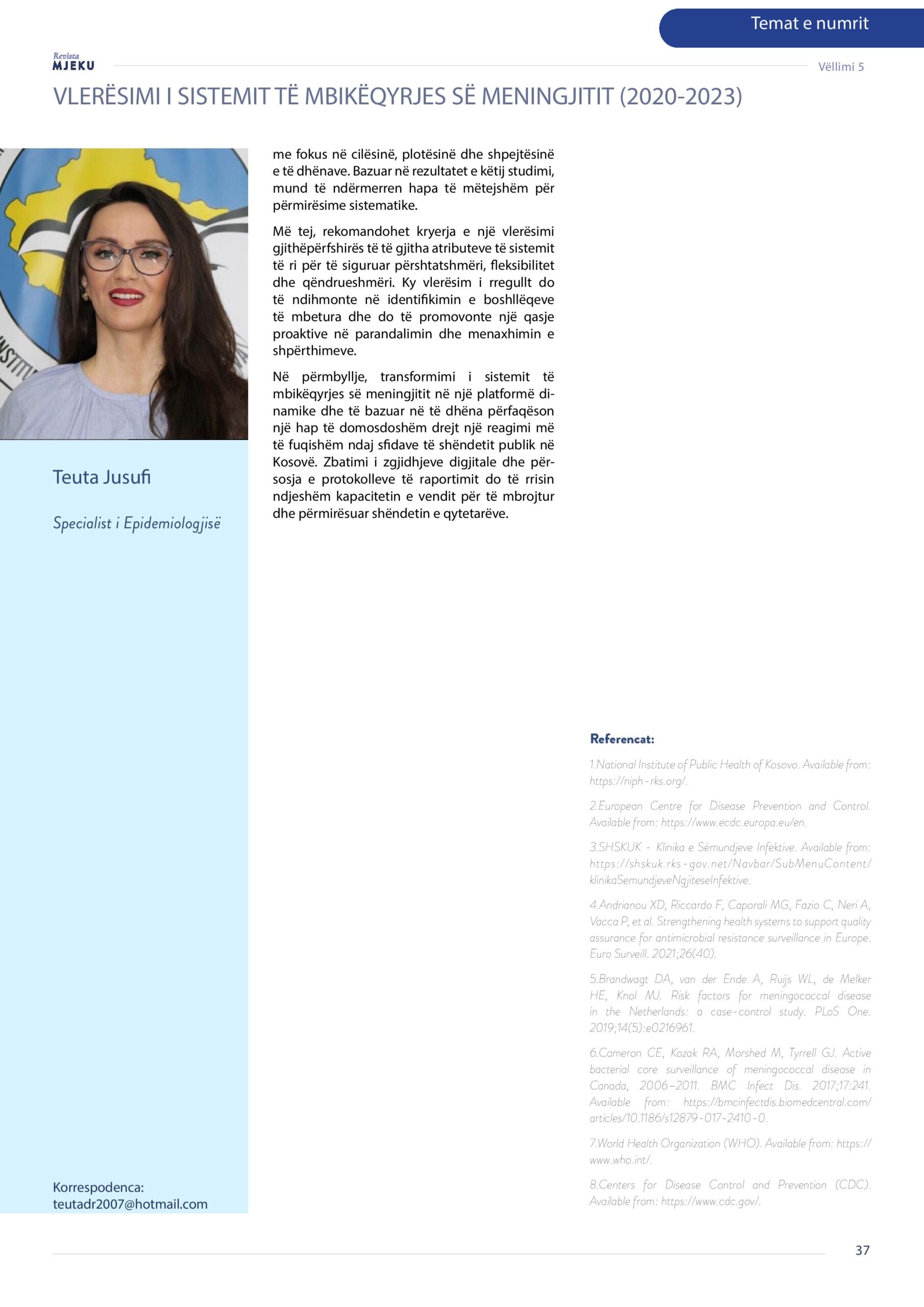 Donjet Bislimi, Pranvera Kaçaniku – Gunga dhe Teuta Jusufi – VLERËSIMI I SISTEMIT TË MBIKËQYRJES SË MENINGJITIT (2020 – 2023)