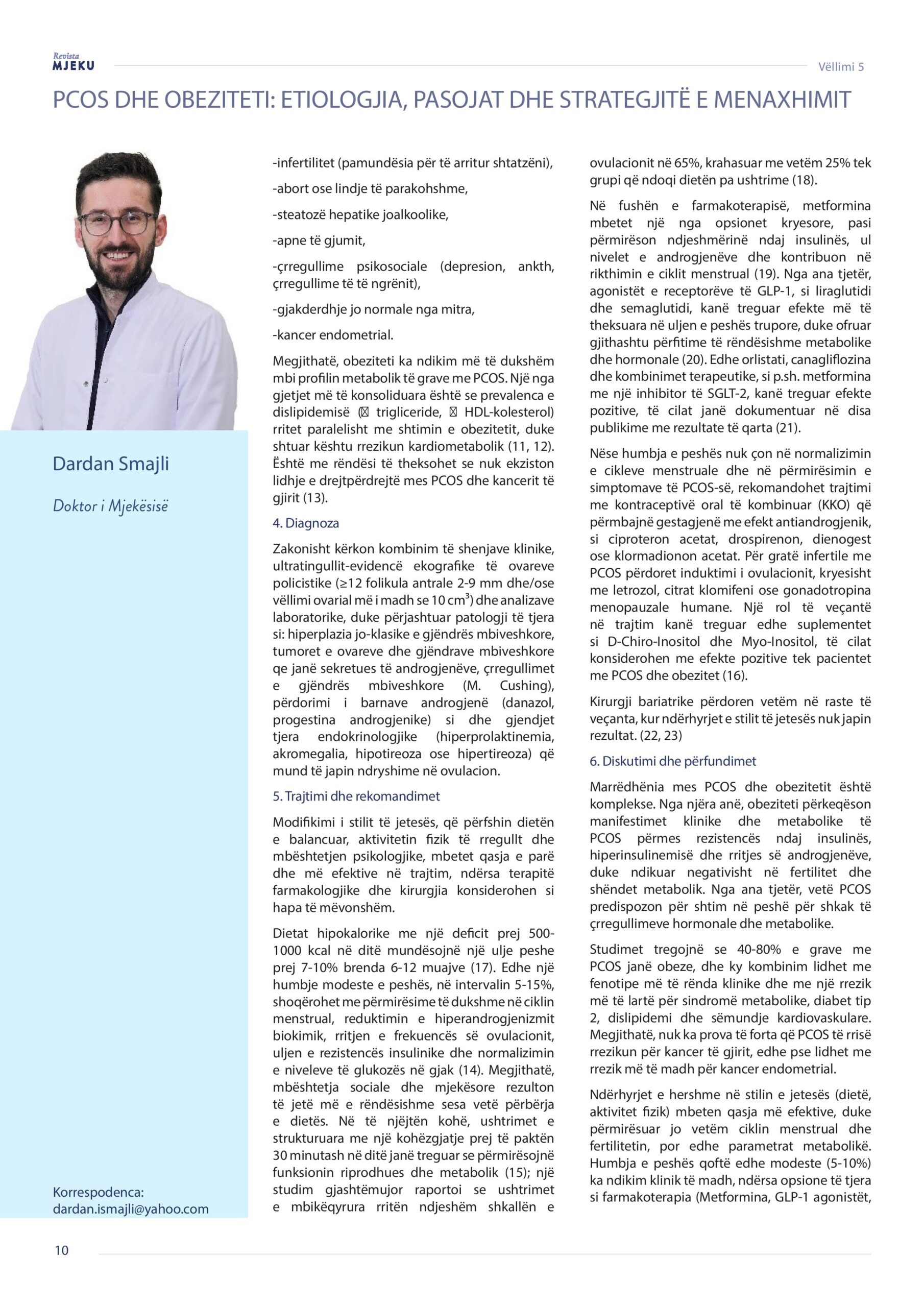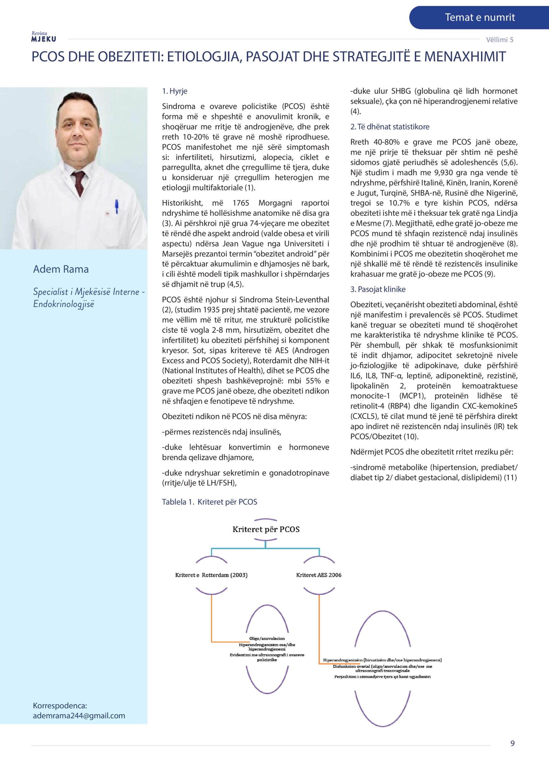 Revista Mjeku, Vëllimi 5, Numër 3, PCOS dhe Obeziteti: Etiologjia,, pasojat dhe strategjitë e menaxhimit, artikull nga Dr. Adem Rama dhe Dr. Dardan Smajli.