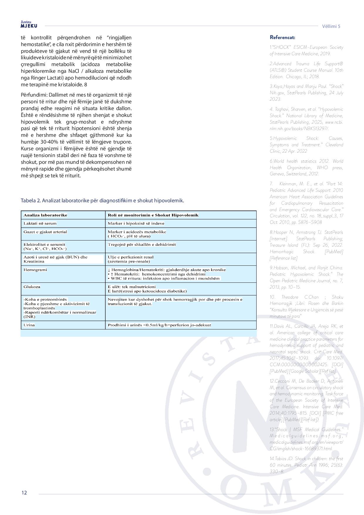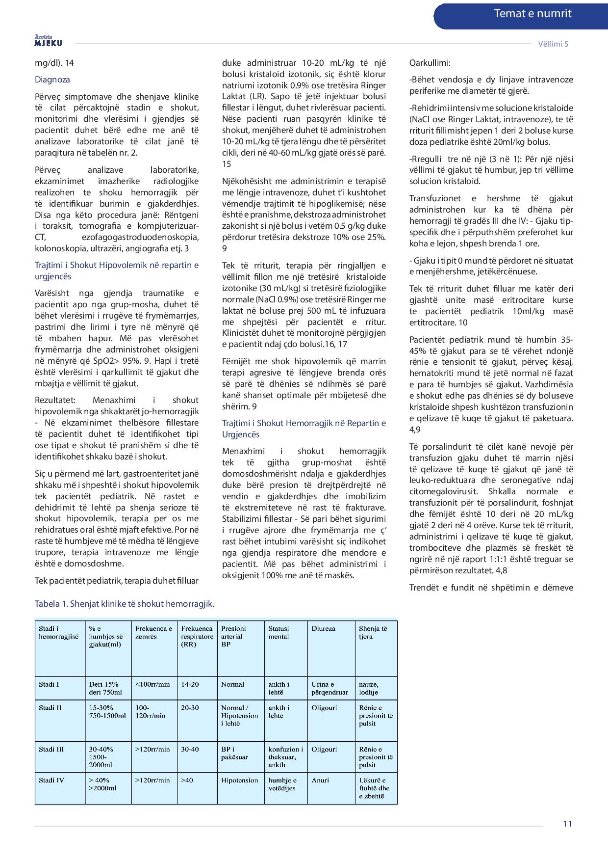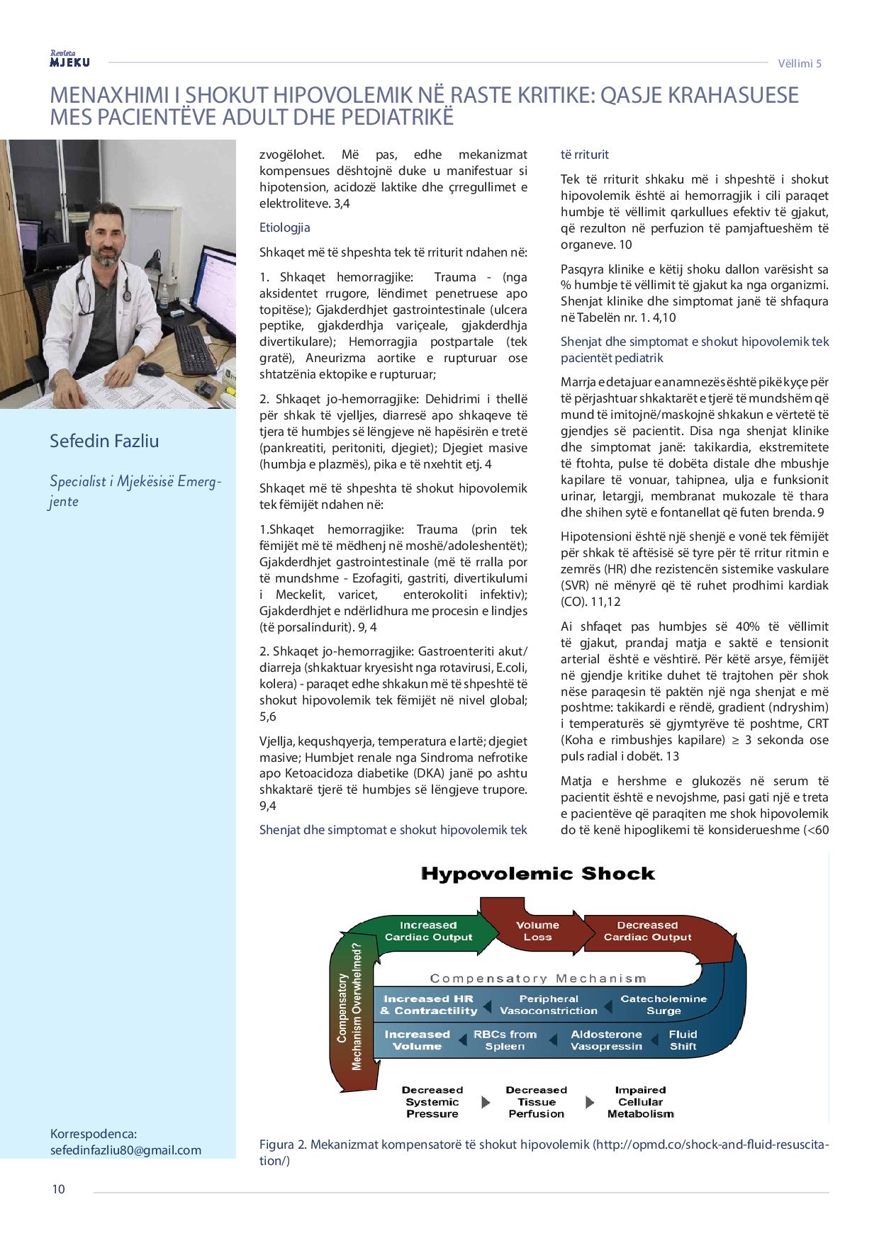 Revista Mjeku, Vëllimi 5, Numër 4; Menaxhimi i shokut hipovolemik në raste klinike: Qasje krahasuese mes pacientëve adult dhe pediatrikë, artikull nga Dr. Arba Thaçi dhe Dr. Sefedin Fazliu.