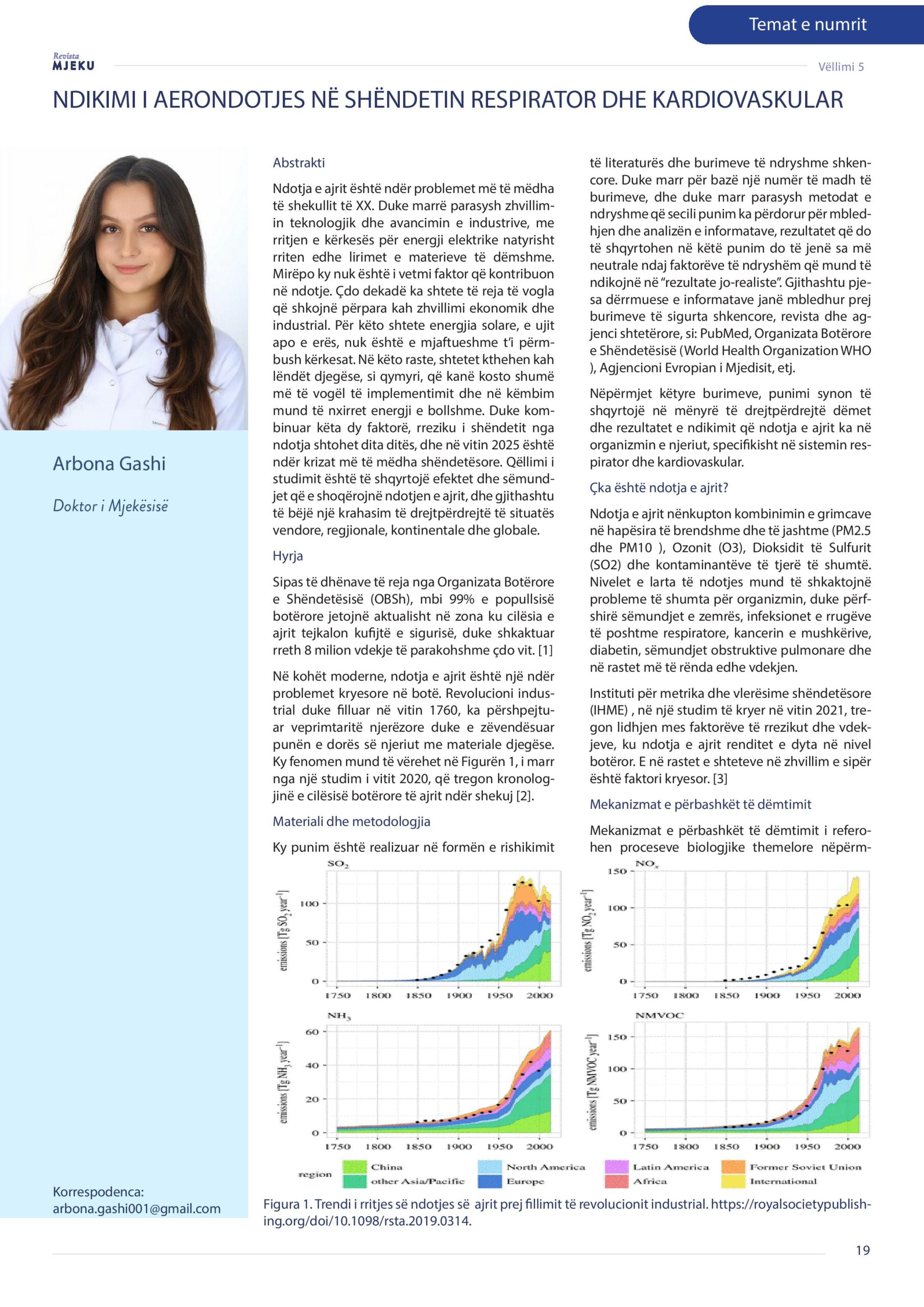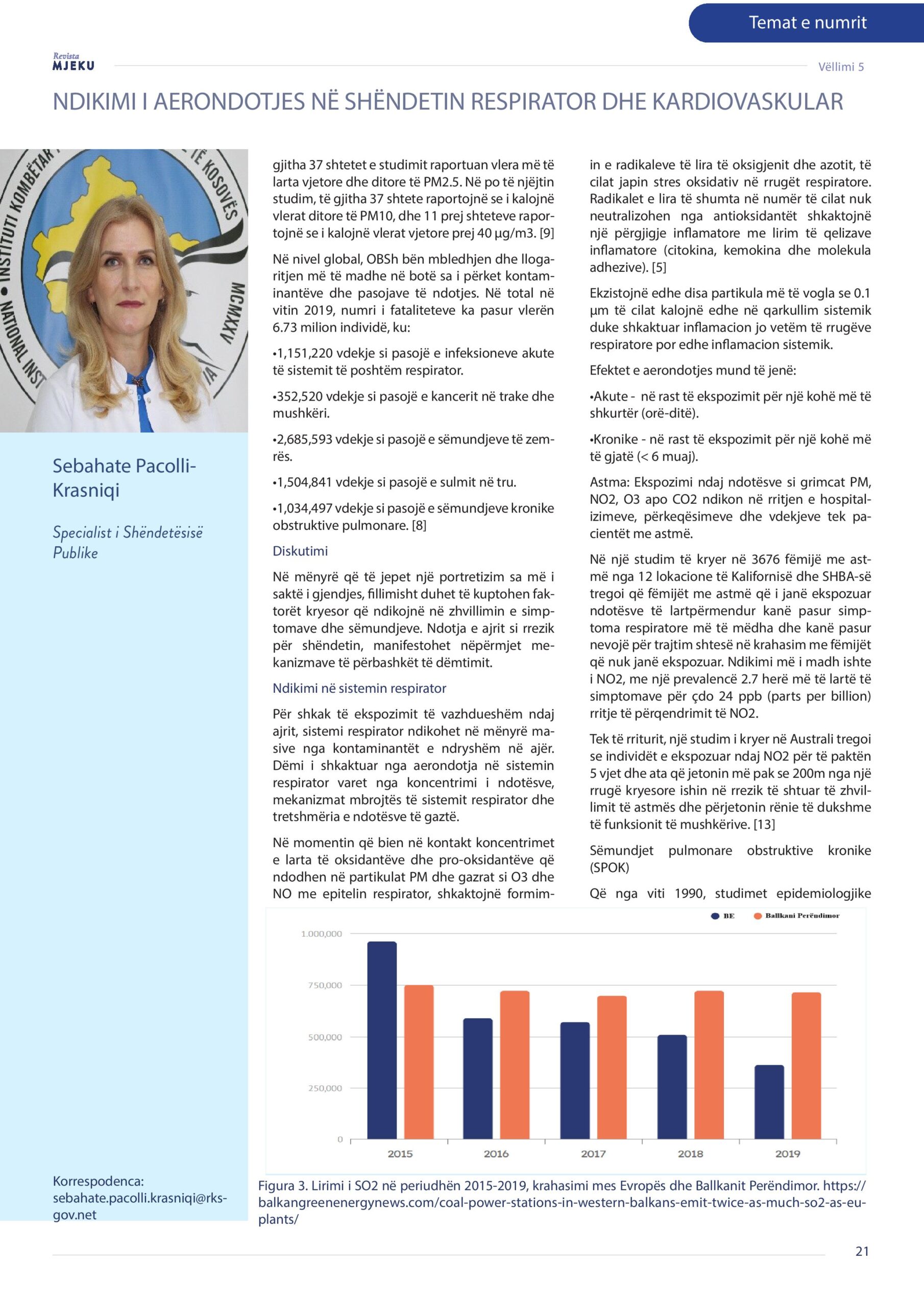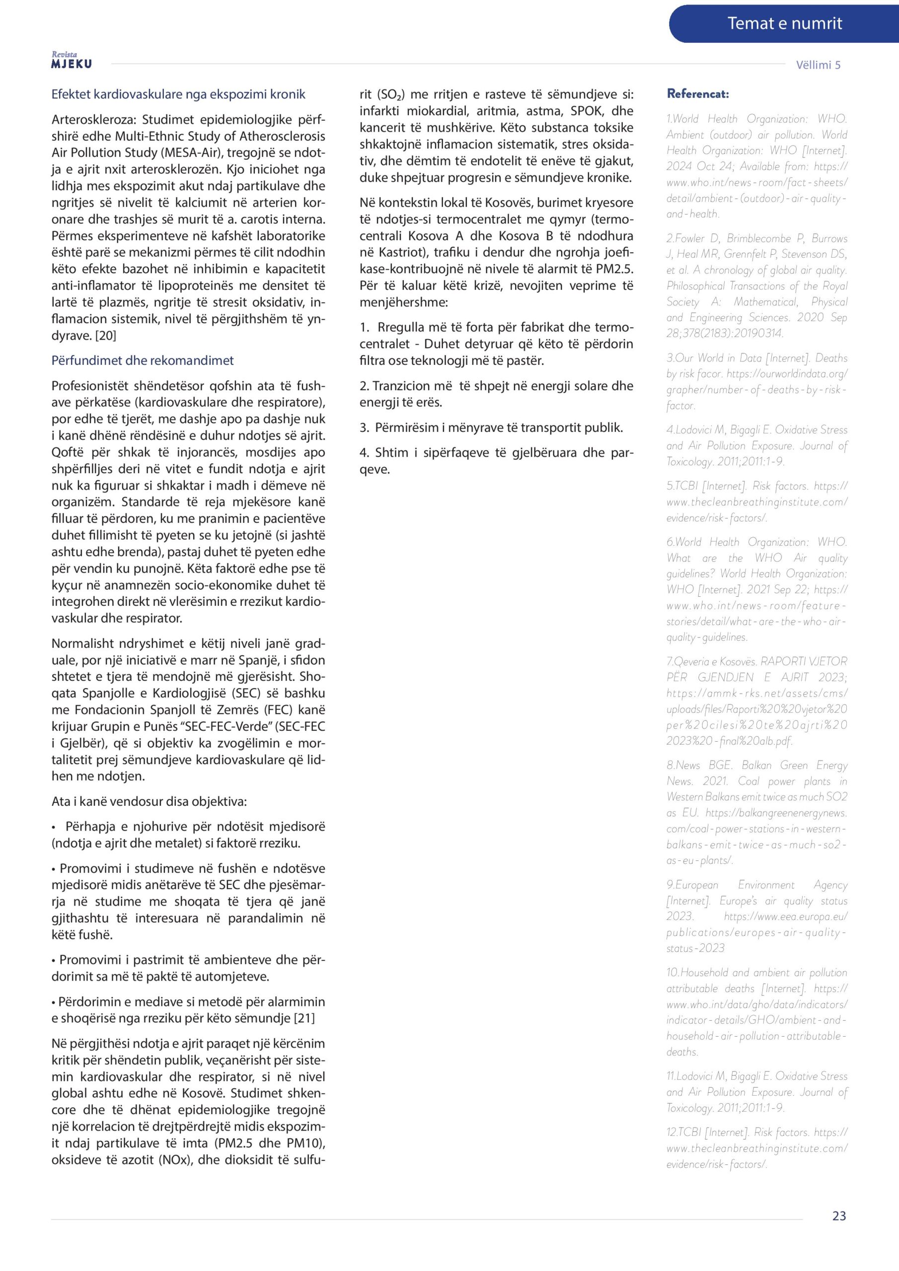 Revista Mjeku, Vëllimi 5, Numër 2; Ndikimi i aerondotjes në shëndetin respirator dhe kardiovaskular, artikull nga Dr. Arbona Gashi, Dr. Florie Miftari – Basholli dhe Dr. Sebahate Pacolli – Krasniqi.