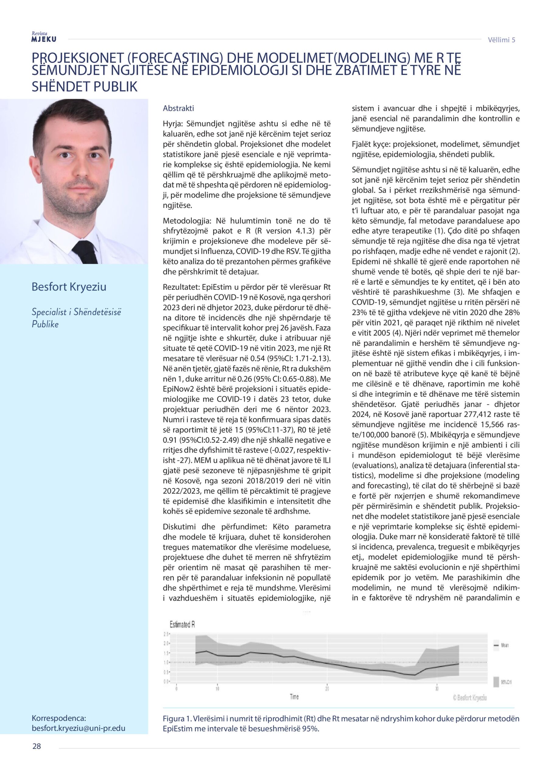 Revista Mjeku, Vëlllimi 5, Numër 2; Projeksionet (Forecasting) dhe modelimet (Modeling) me R te sëmundjet ngjitëse në epidemiologji si dhe zbatimet e tyre në Shëndet Publike, artikull nga Dr. Besfort Kryeziu.