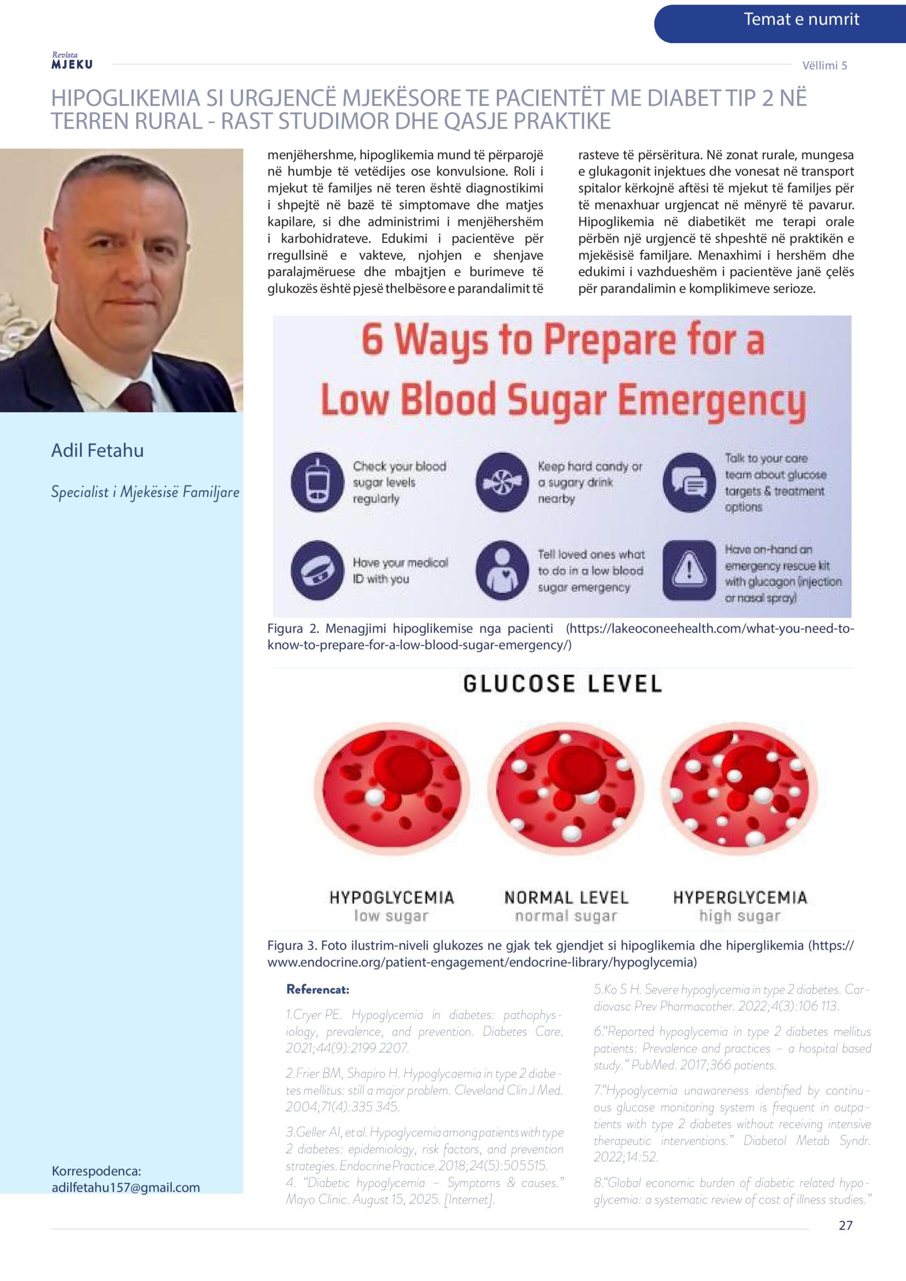 Revista Mjeku, Vëllimi 5, Numër 4; Hipoglikemia si urgjencë mjekësore te pacientët me Diabet Tip 2 në terren rural – Rast studimor dhe qasje praktike, artikull ngas Dr. Dastid Paçarizi dhe Dr. Adil Fetahu.