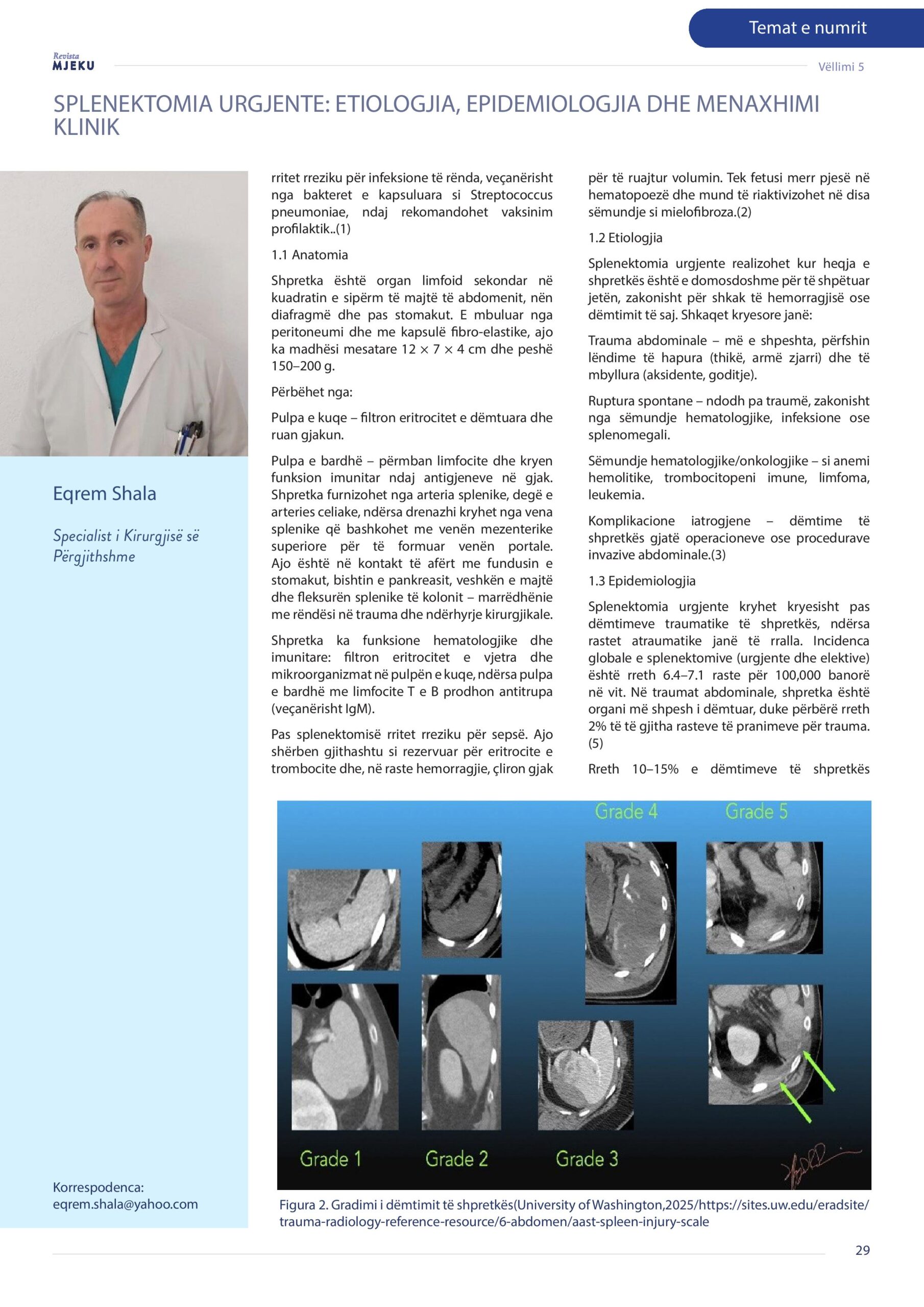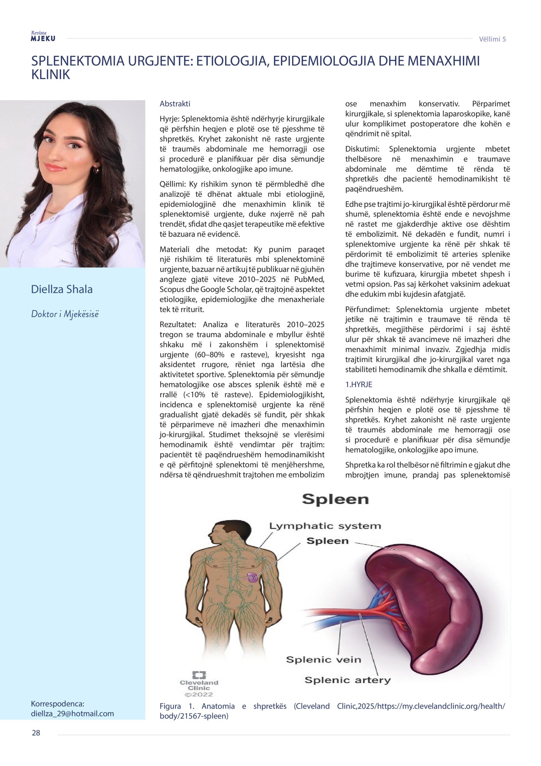 Revista Mjeku, Vëllimi 5, Numër 4; Splenektomia urgjente: Etiologjia, epidemiologjia dhe menaxhimi klinik, artikull nga Dr. Diellza Shala dhe Dr. Eqrem Shala.