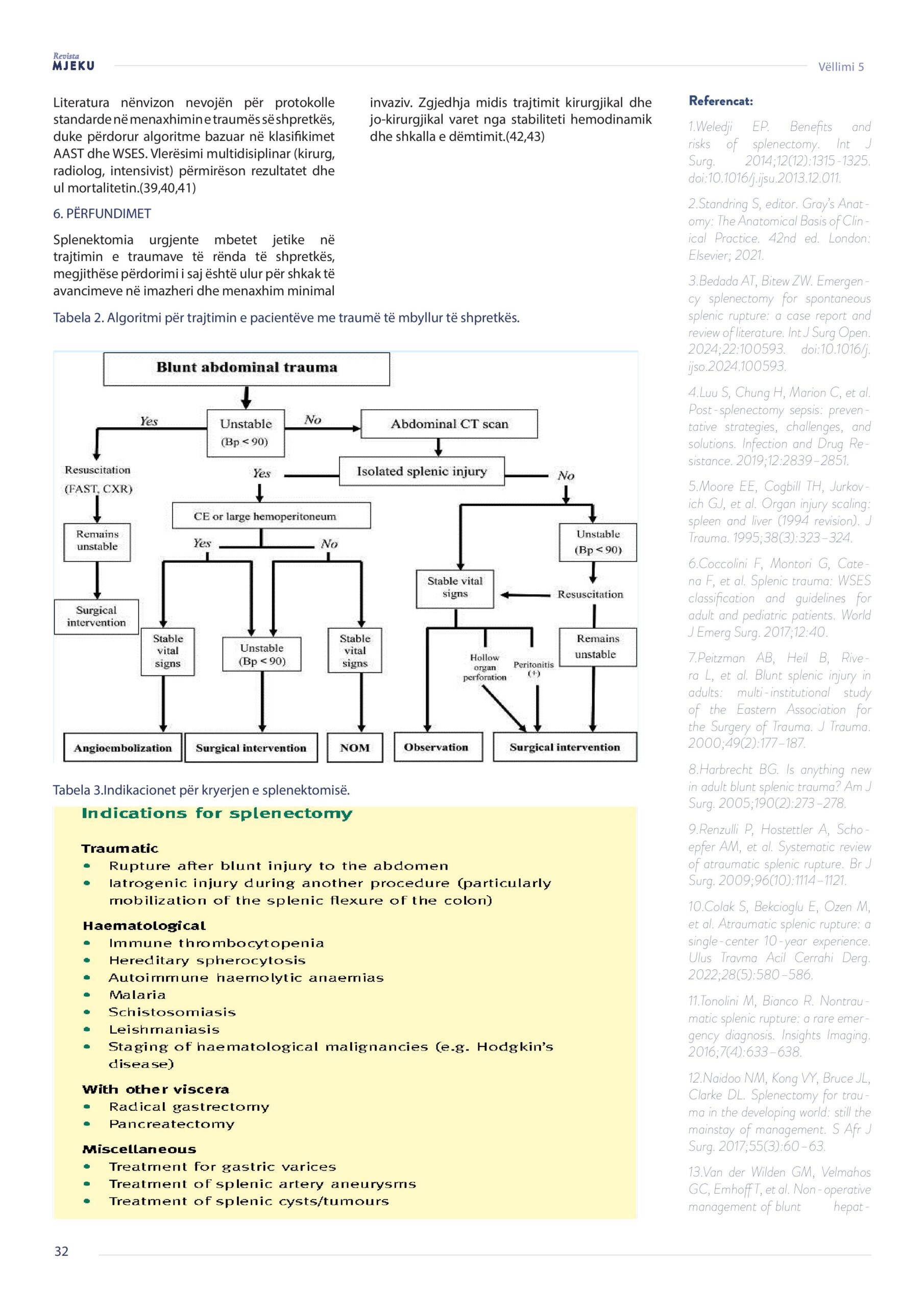 Dr. Diellza Shala dhe Dr. Eqrem Shala – SPLENEKTOMIA URGJENTE: ETIOLOGJIA, EPIDEMIOLOGJIA DHE MENAXHIMI KLINIK