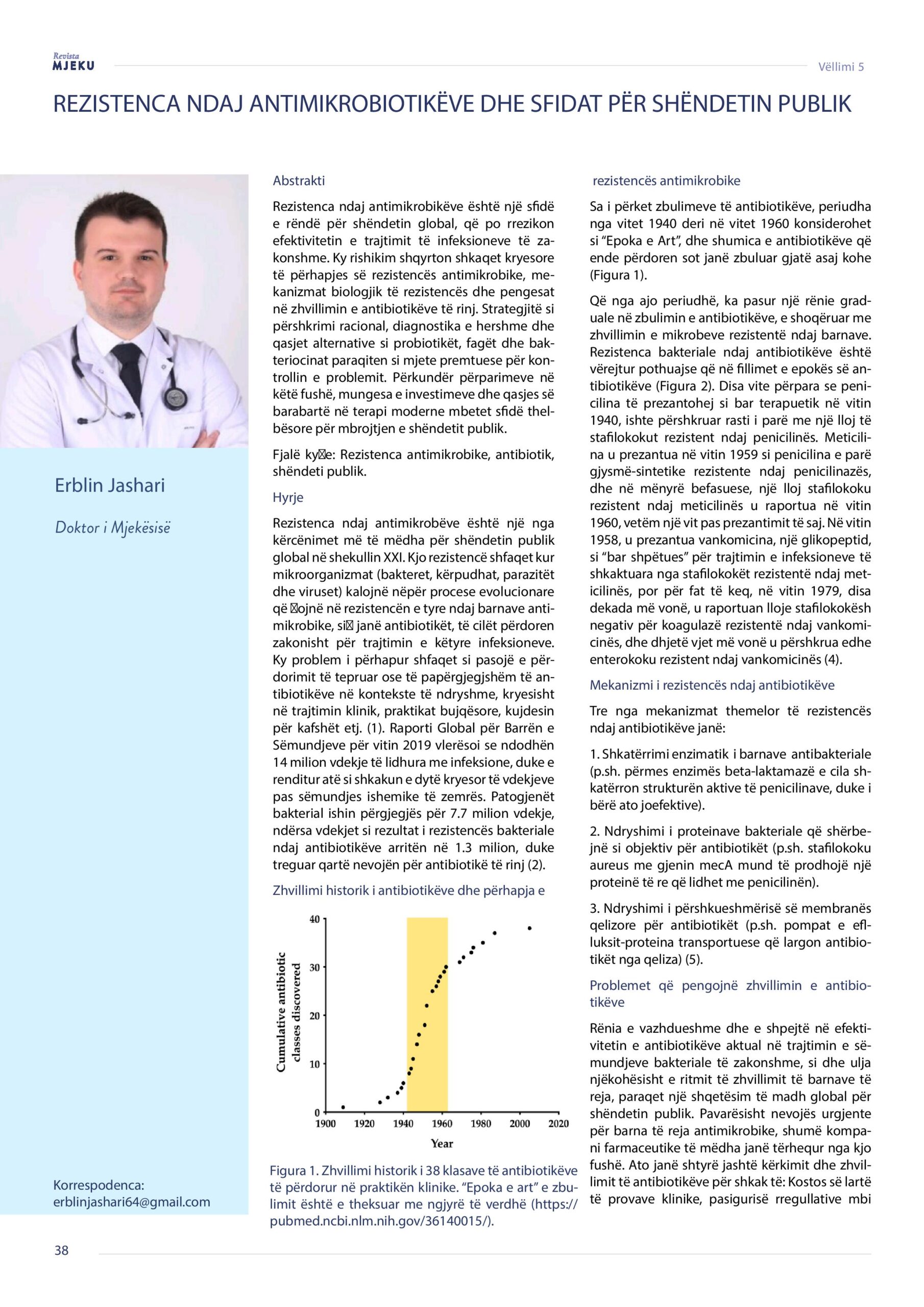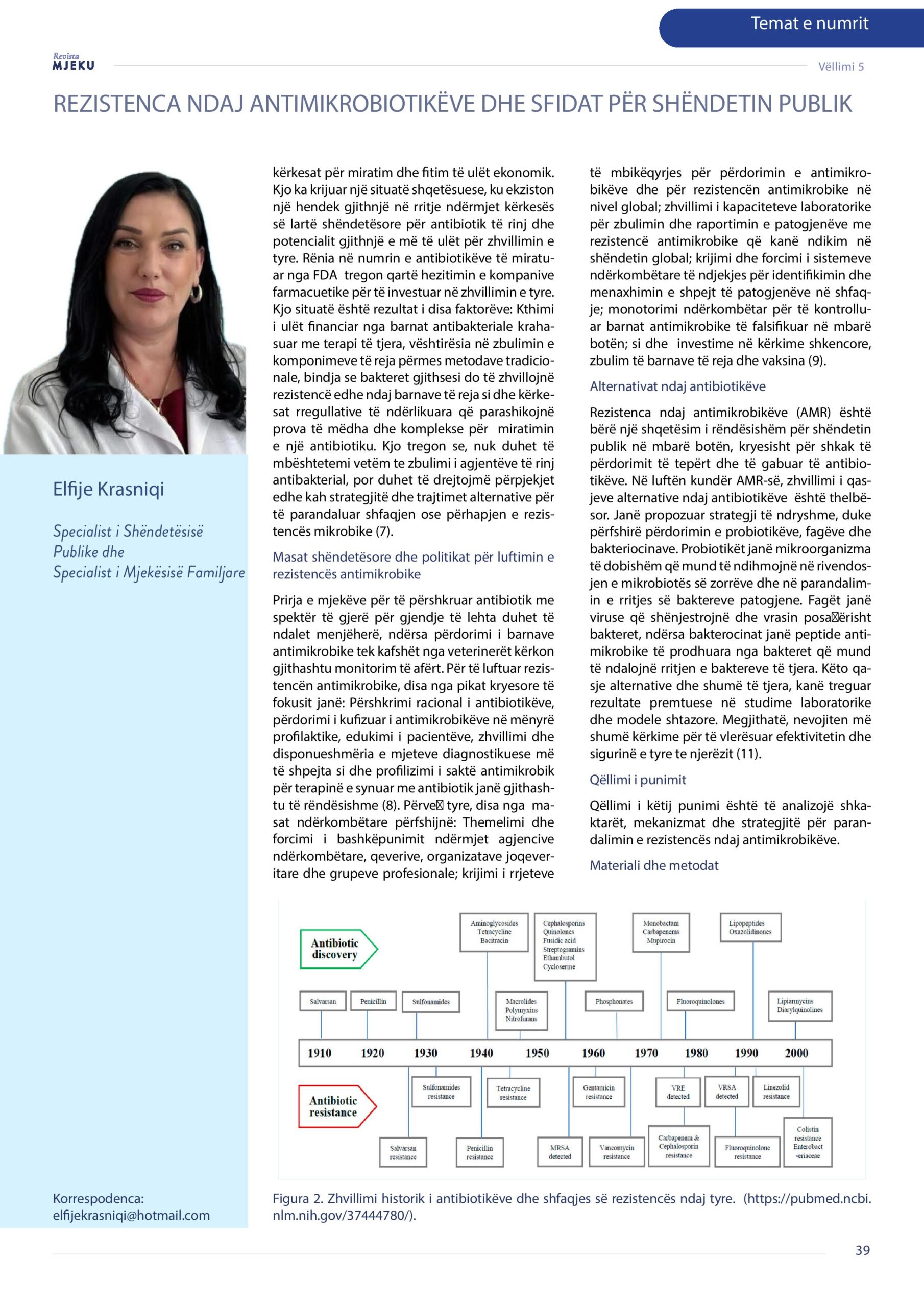 Revista Mjeku, Vëllimi 5, Numër 2; Rezistenca ndaj antimikrobiotikëve dhe sfidat për shëndetin publik, artikull nga Dr. Erblin Jashari dhe Dr. Elfije Krasniqi.