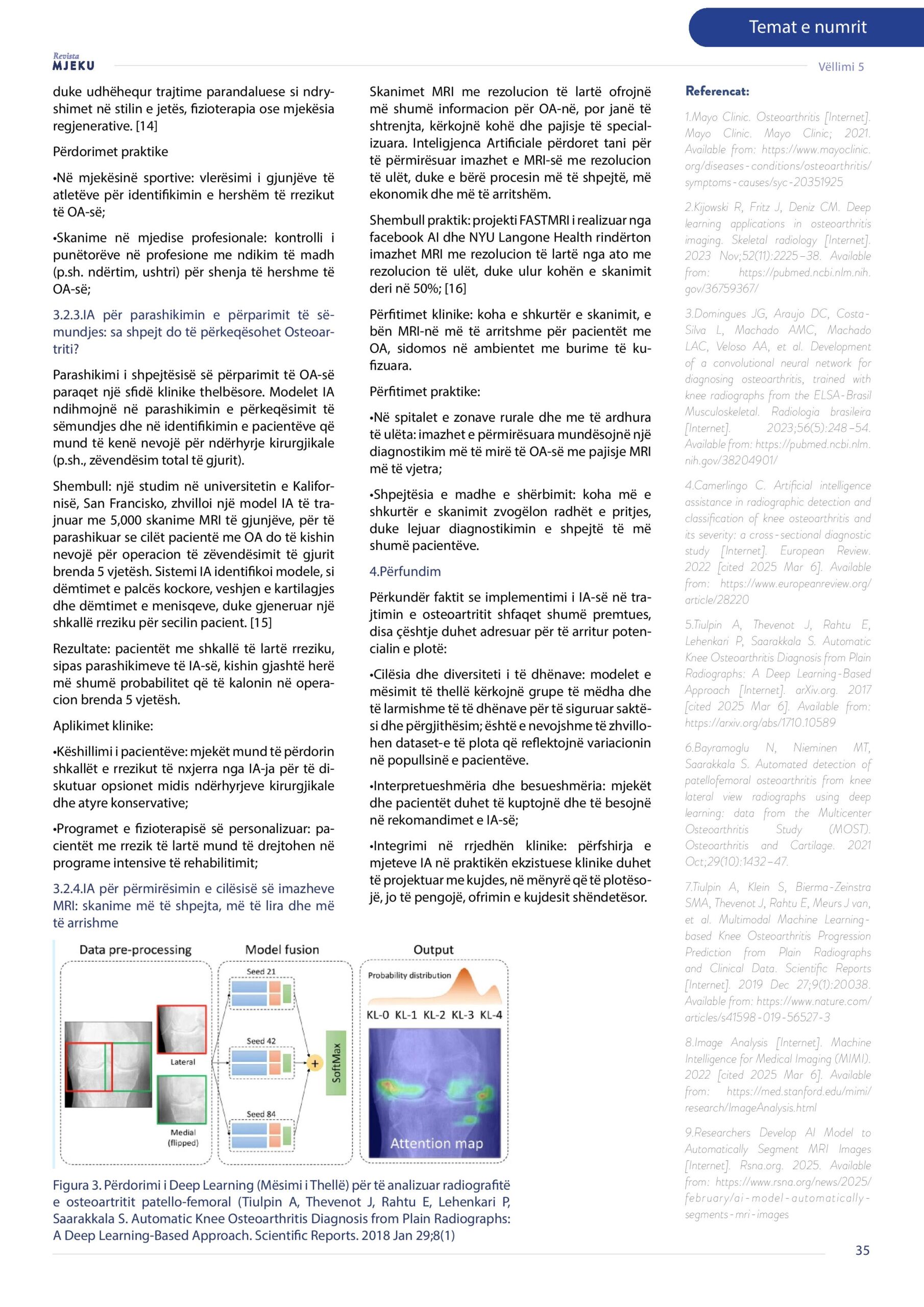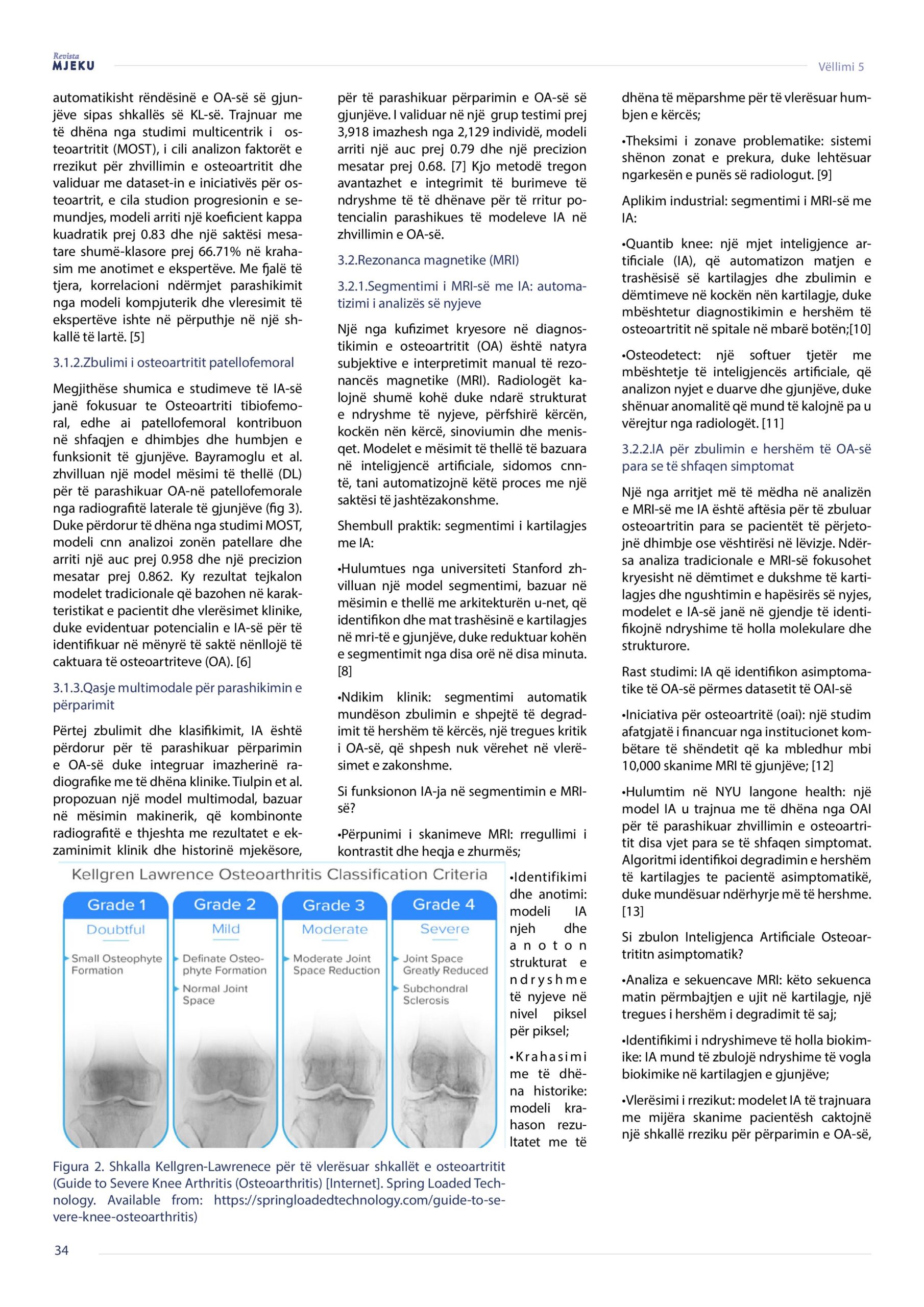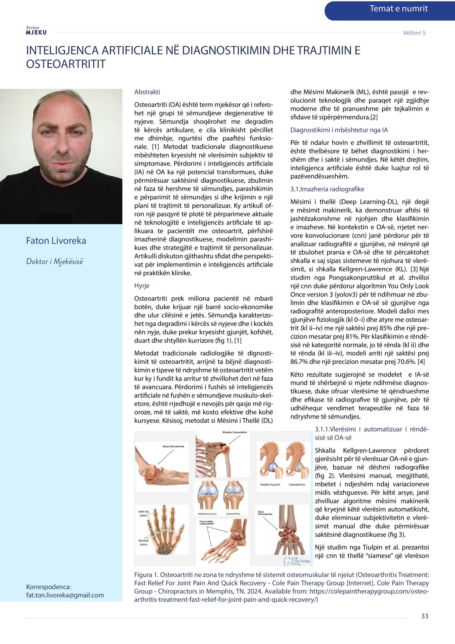 Revista Mjeku, Vëllimi 5, Numër 1; Inteligjenca artificiale në diagnostikimin dhe trajtimin e osteoartritit, artikull nga Dr. Faton Livoreka.