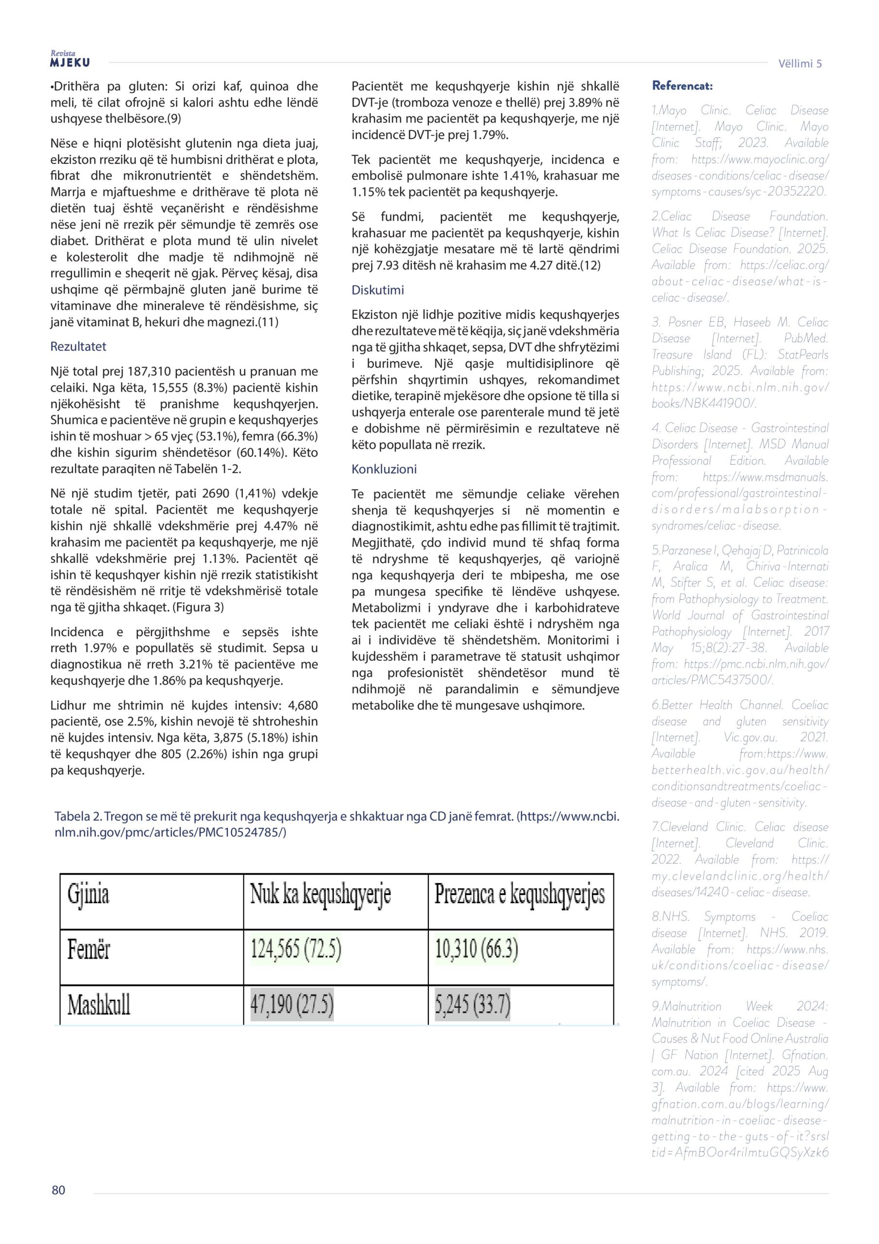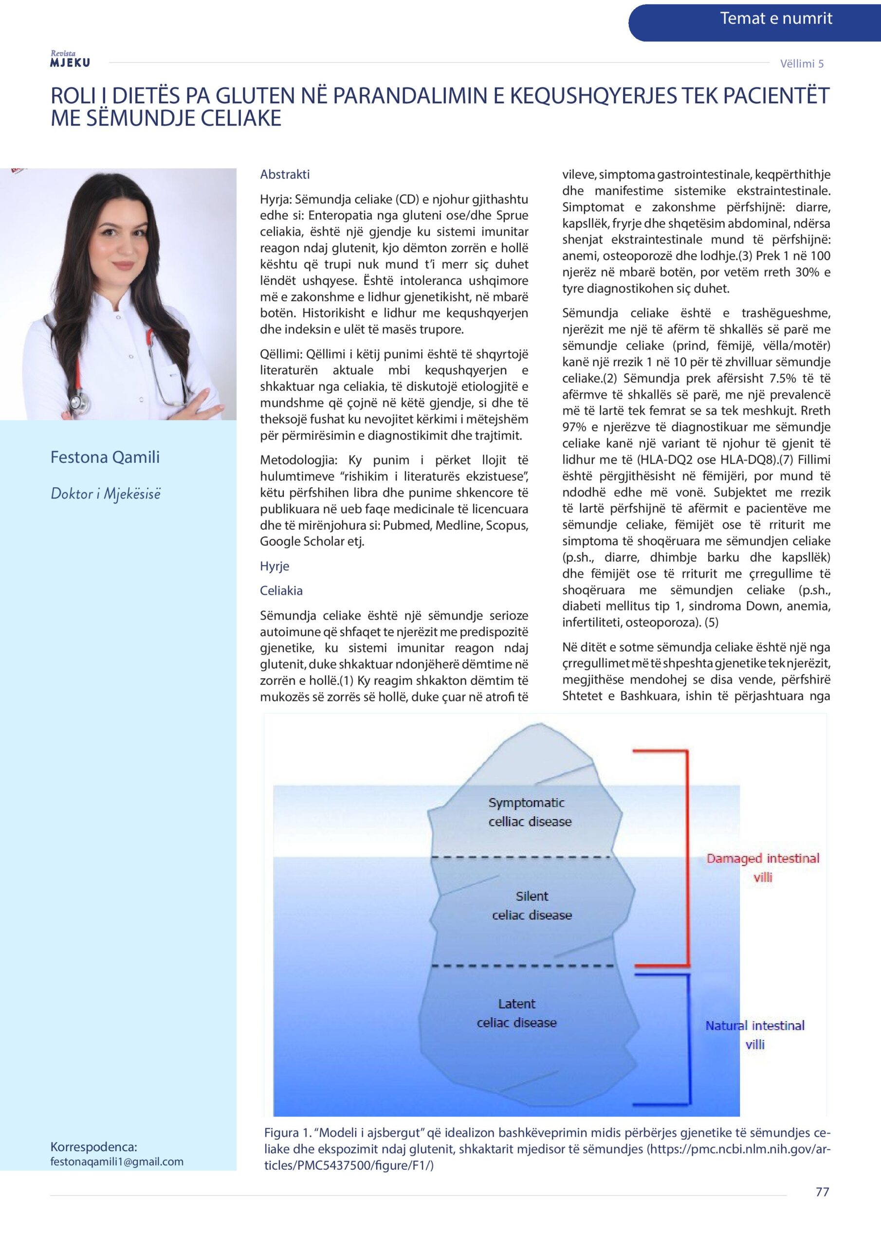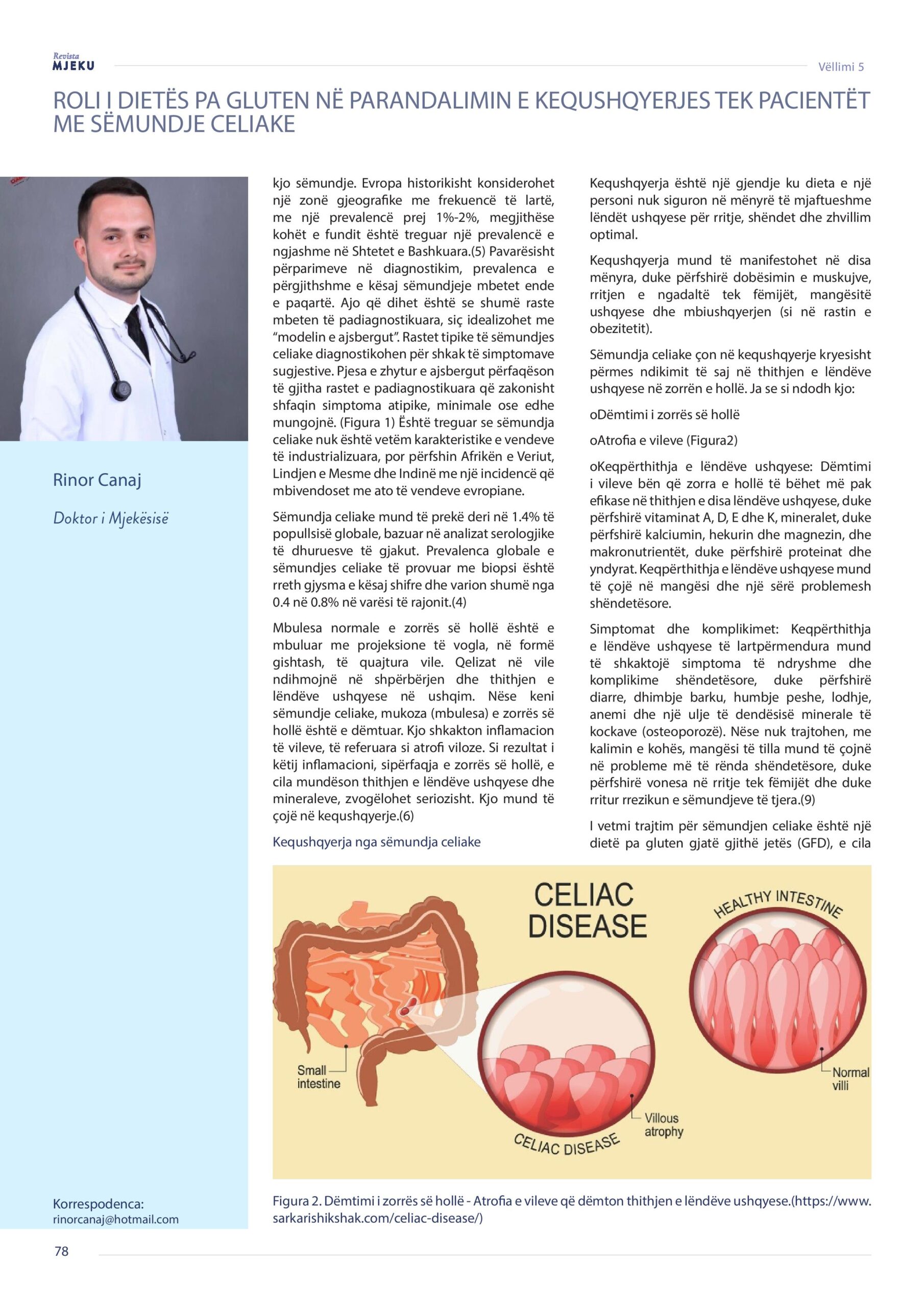 Revista Mjeku, Vëllimi 5, Numër 3; Roli i dietës pa gluten në parandalimin e kequshqyerjes tek pacientët me sëmundje celiake, artikull nga Dr. Festona Qamili dhe Dr. Rinor Canaj.