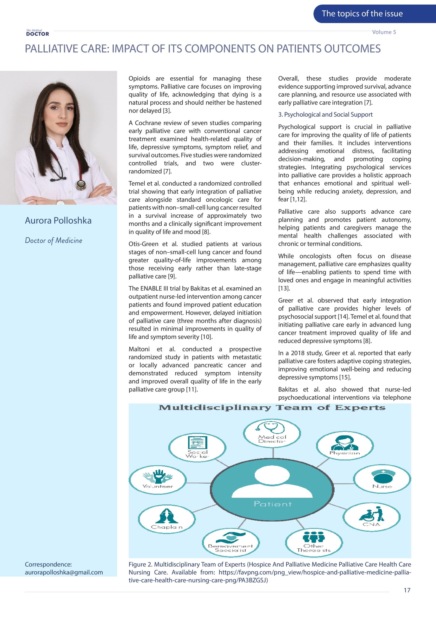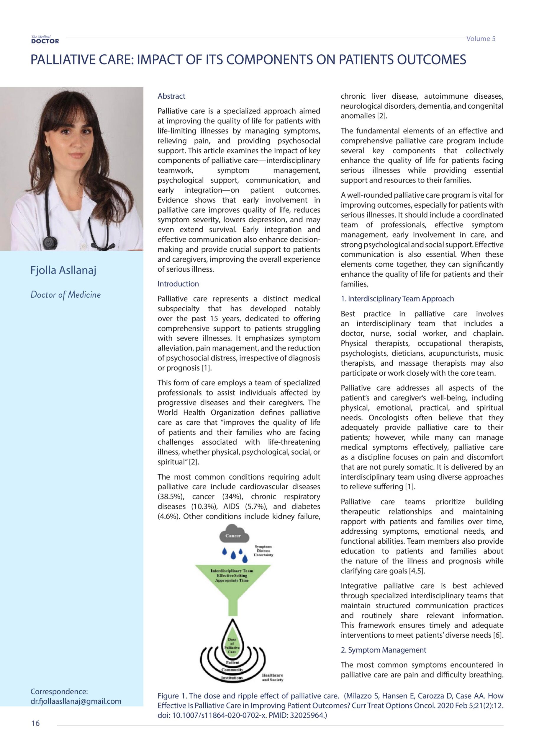 Revista Mjeku, Vëllimi 5, Numër 4; Suplementi shkencor; Palliative care: Impact of its components on patients outcomes, artikull nga Dr. Fjolla Asllanaj dhe Dr. Aurora Polloshka.