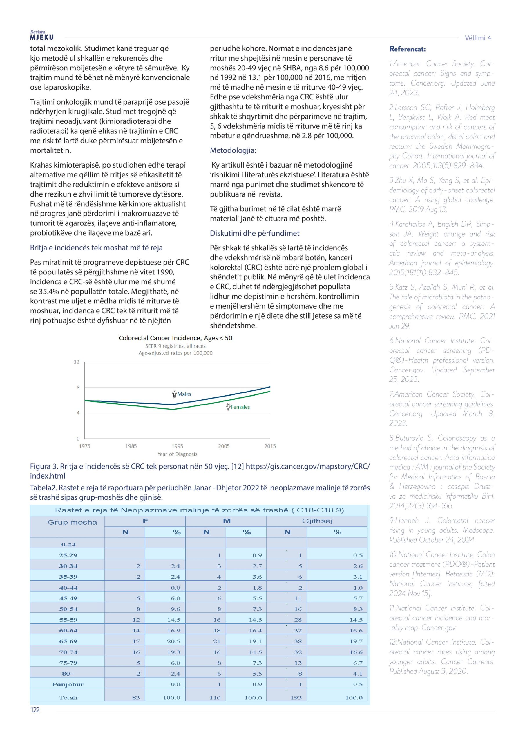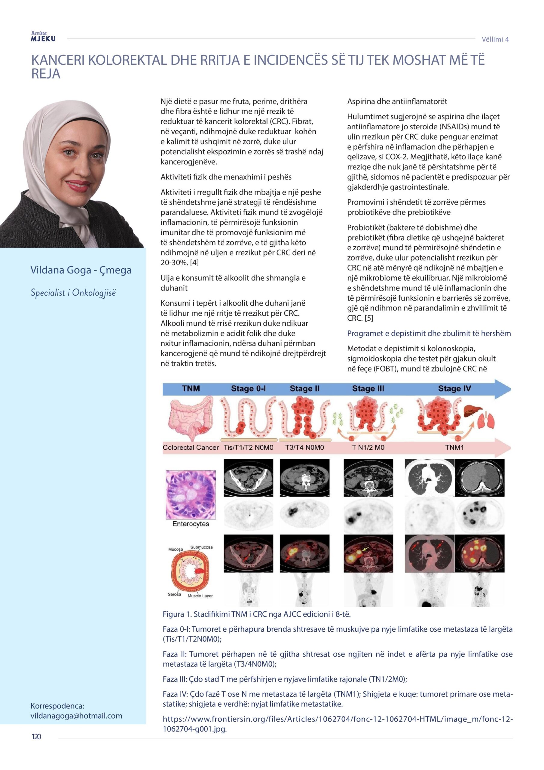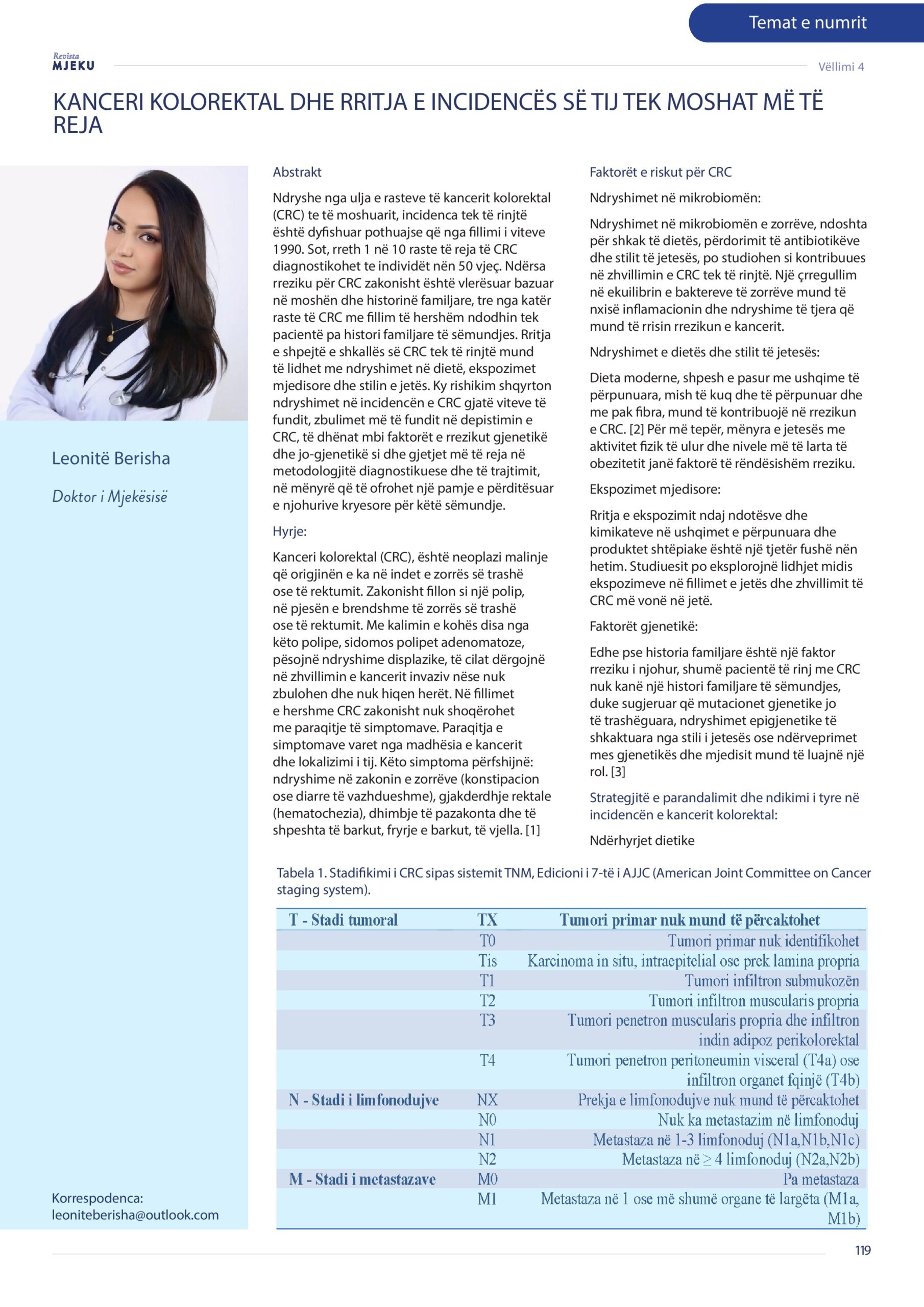 Revista Mjeku, Vëllimi 4, Numër 4; Kanceri kolorektal dhe rritja e incidencës së tij tek moshat më të reja, artikull nga Dr. Leonitë Berisha dhe Dr. Vildana Goga – Çmega.