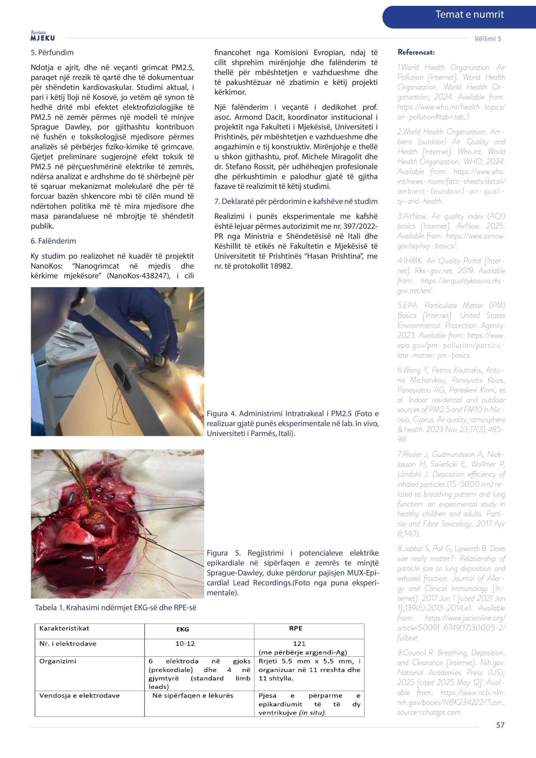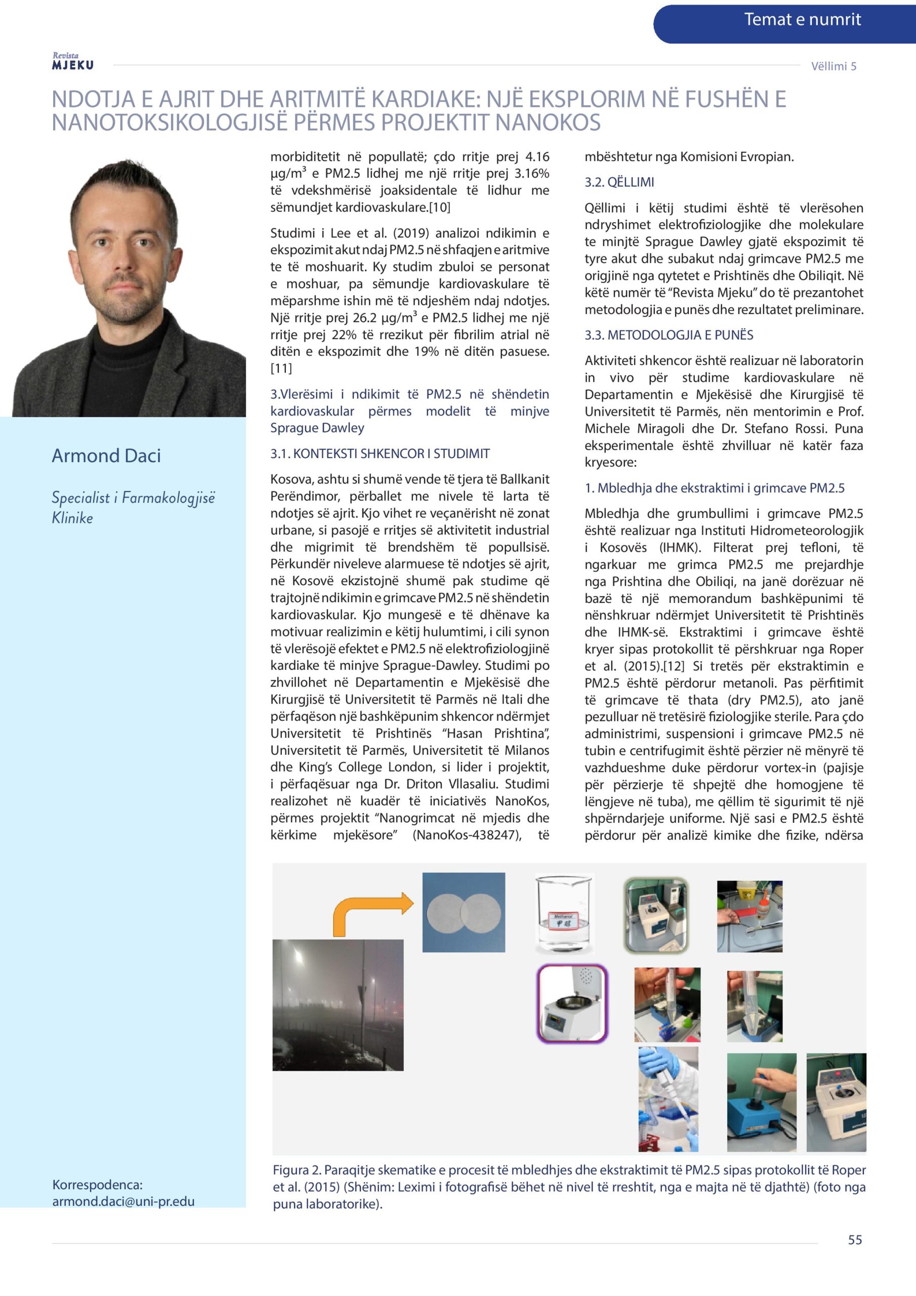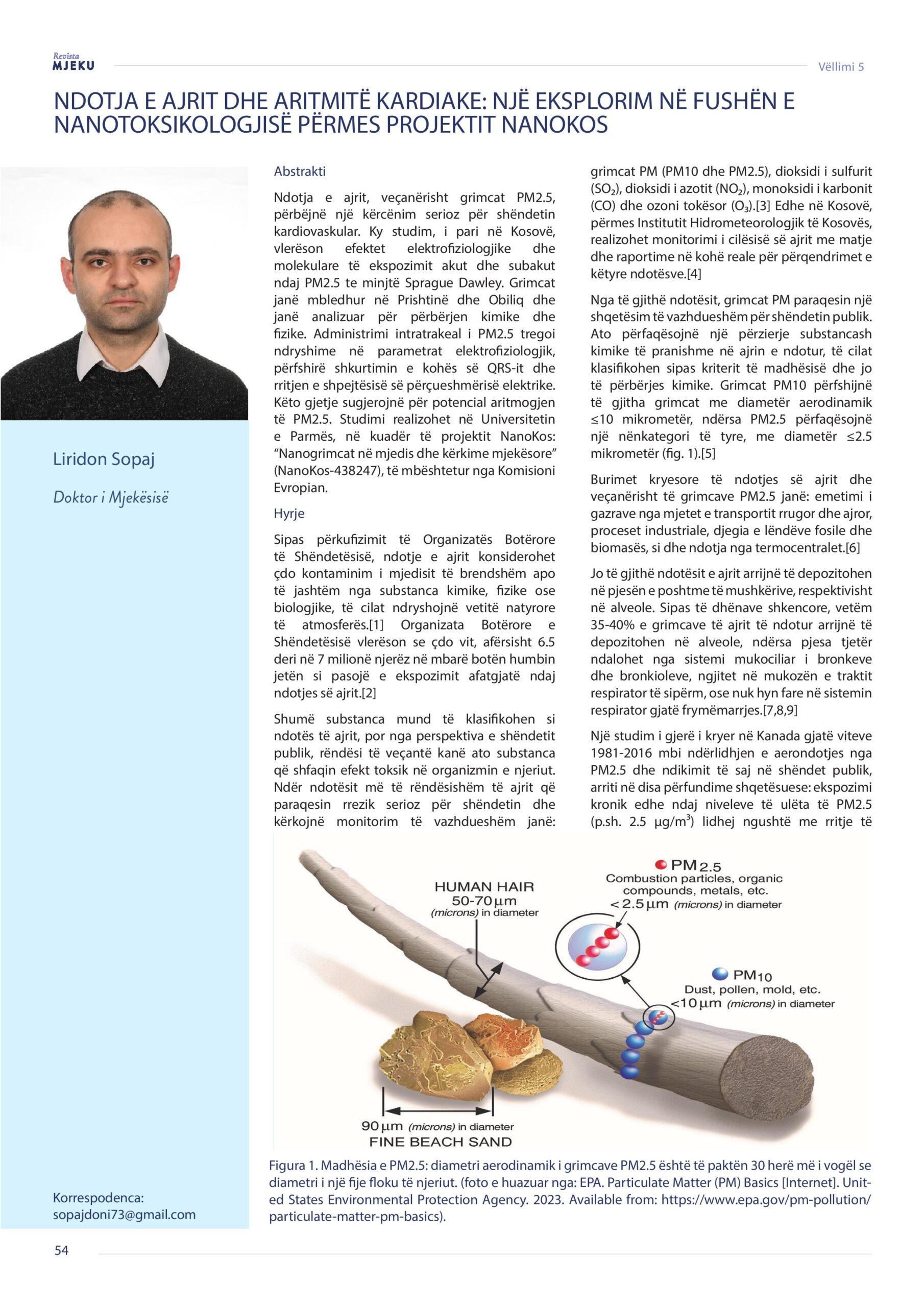 Revista Mjeku, Vëllimi 5, Numër 2; Ndotja e ajrit dhe aritmitë kardiake: Një eksplorim në fushën e nanotoksikologjisë përmes projektit nanokos, artikull nga Dr. Liridon Sopaj dhe Armond Daci.