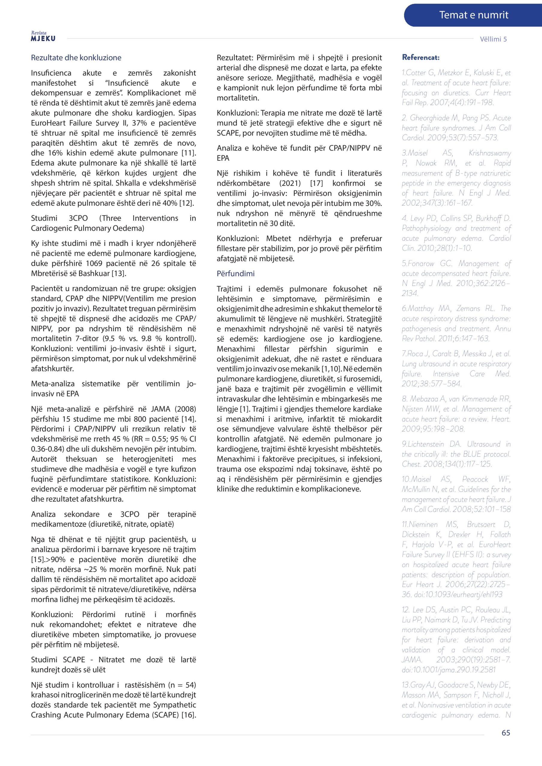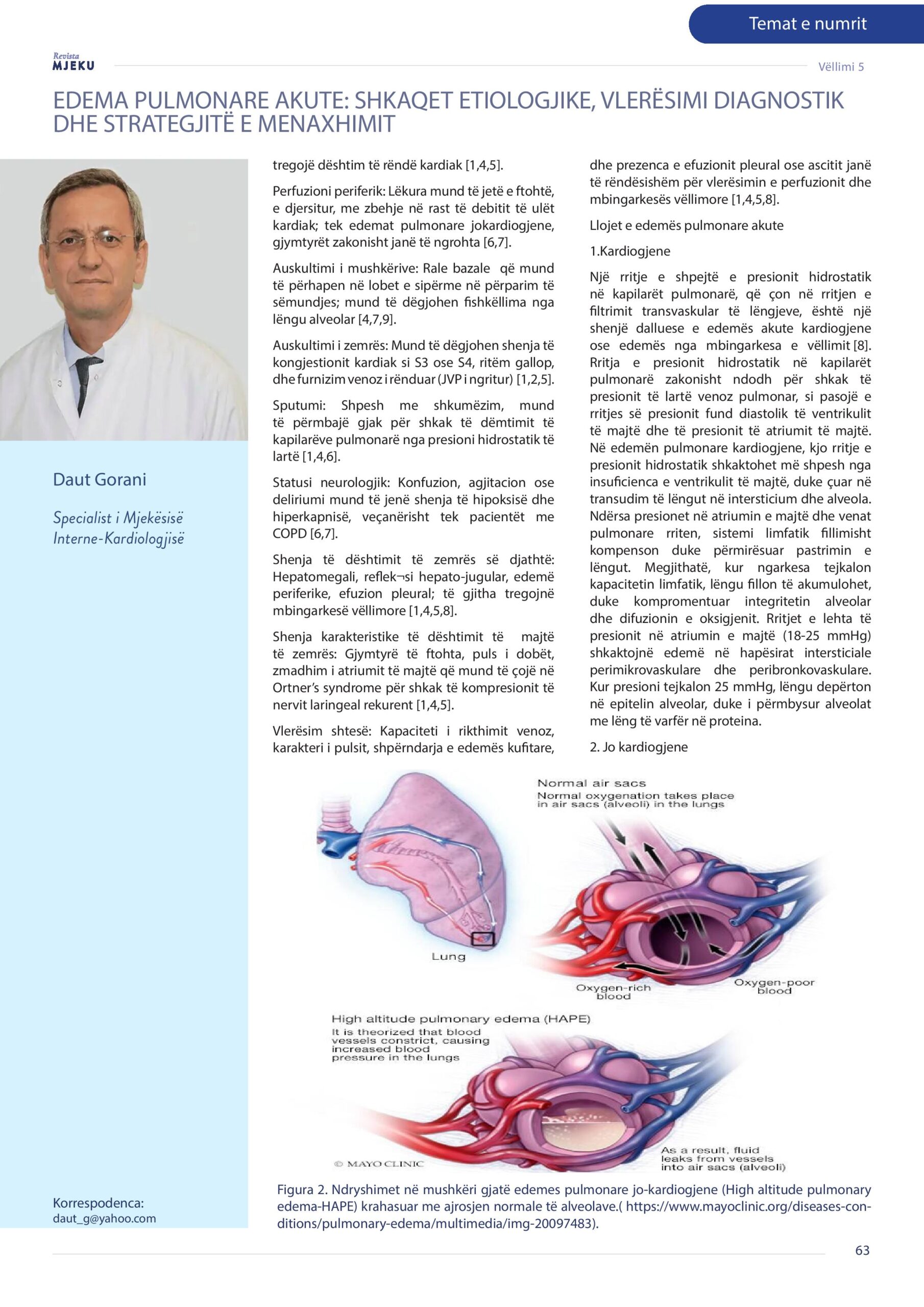Revista Mjeku, Vëllimi 5, Numër 4; Edema pulmonare akute: Shkaqet etiologjike, vlerësimi diagnostic dhe strategjitë e menaxhimit, artikull nga Dr. Lirza Gorani dhe Dr. Daut Gorani.