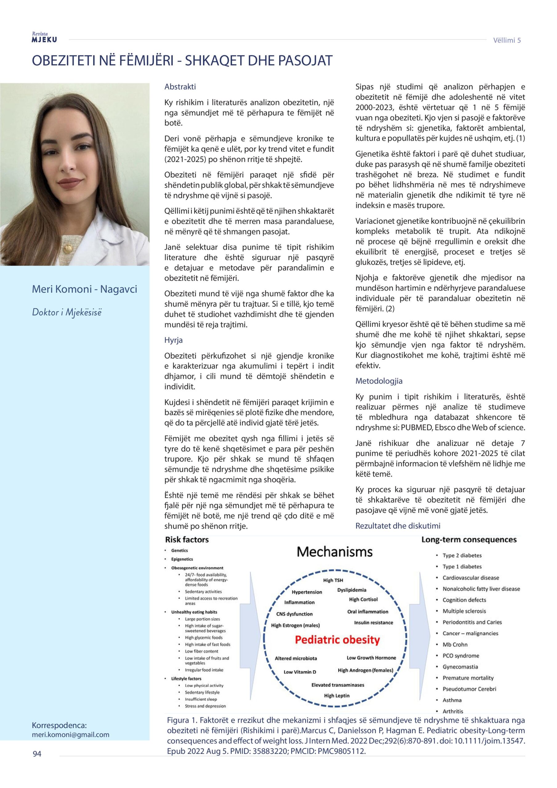 Revista Mjeku, Vëllimi 5, Numër 3, Obeziteti në fëmijëri – Shkaqet dhe pasojat, artikull nga Dr. Meri Komoni- Nagavci dhe Dr. Basri Komoni.