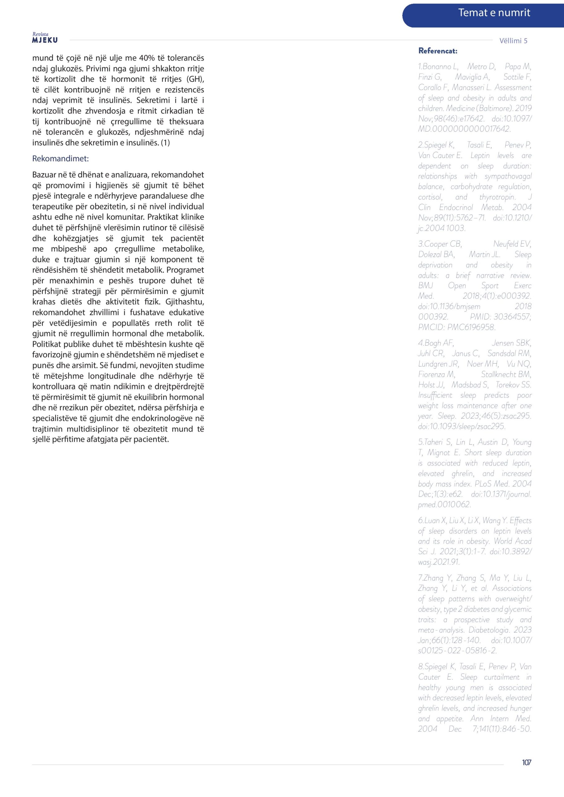 Revista Mjeku, Vëllimi 5, Numër 3; Ndikimi i gjumit të pamjaftueshëm në hormone leptinë dhe ghrelinë dhe rrezikun për obezitet, artikull nga Dr. Olta Merovci dhe Dr. Elton Bahtiri.