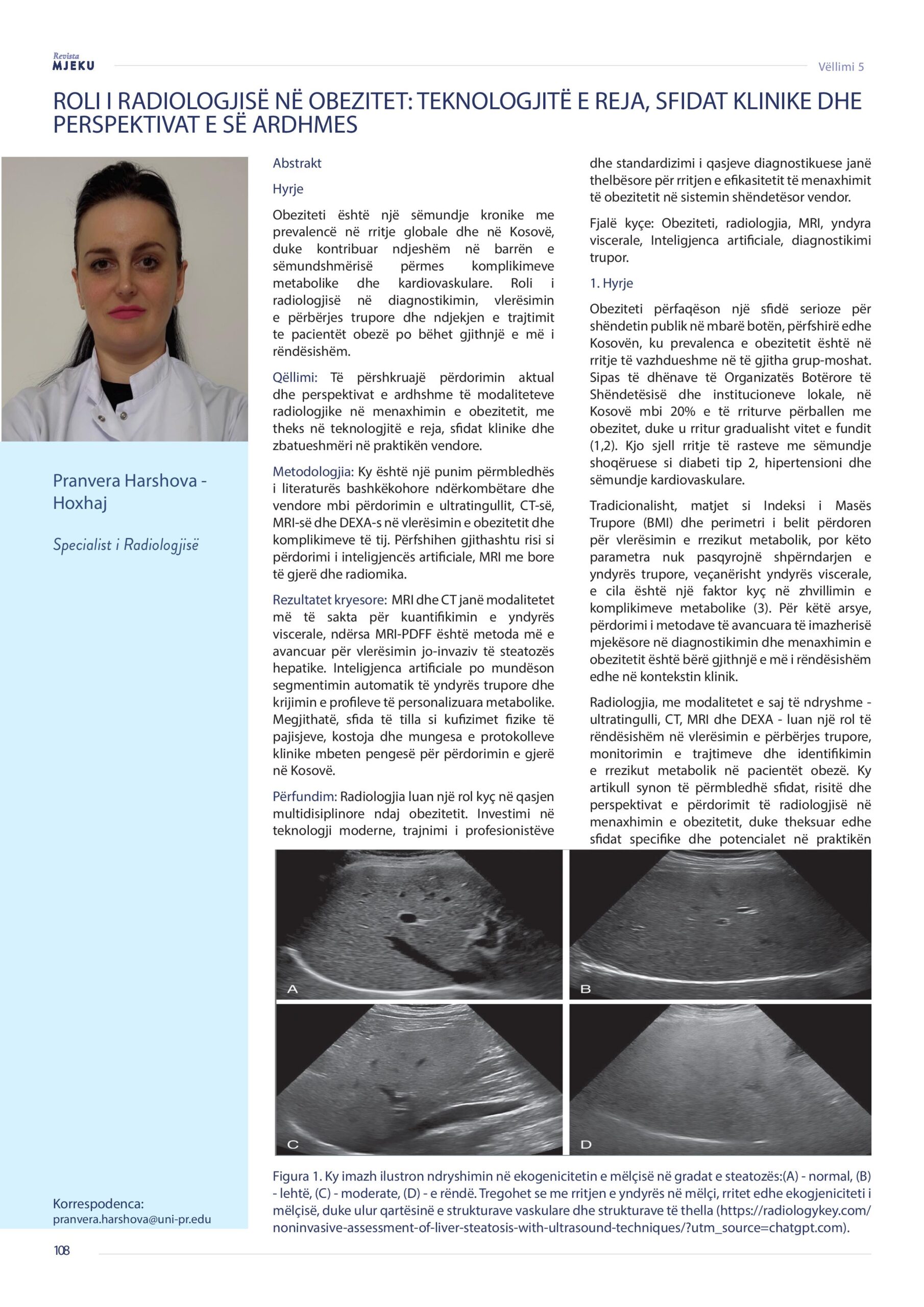 Revista Mjeku, Vëllimi 5, Numër 3, Roli i radiologjisë në obezitet: Teknologjitë e reja, sfidat klinike dhe perspektivat e së ardhmes, artikull nga Dr. Pranvera Harshova- Hoxhaj.