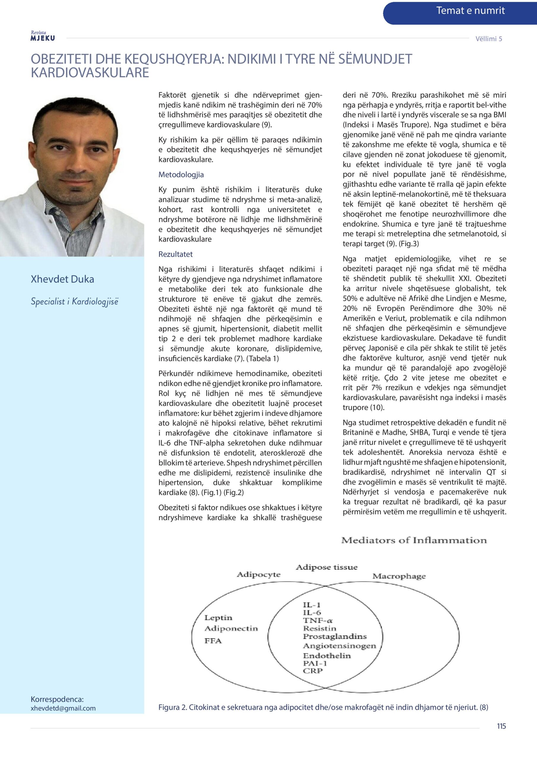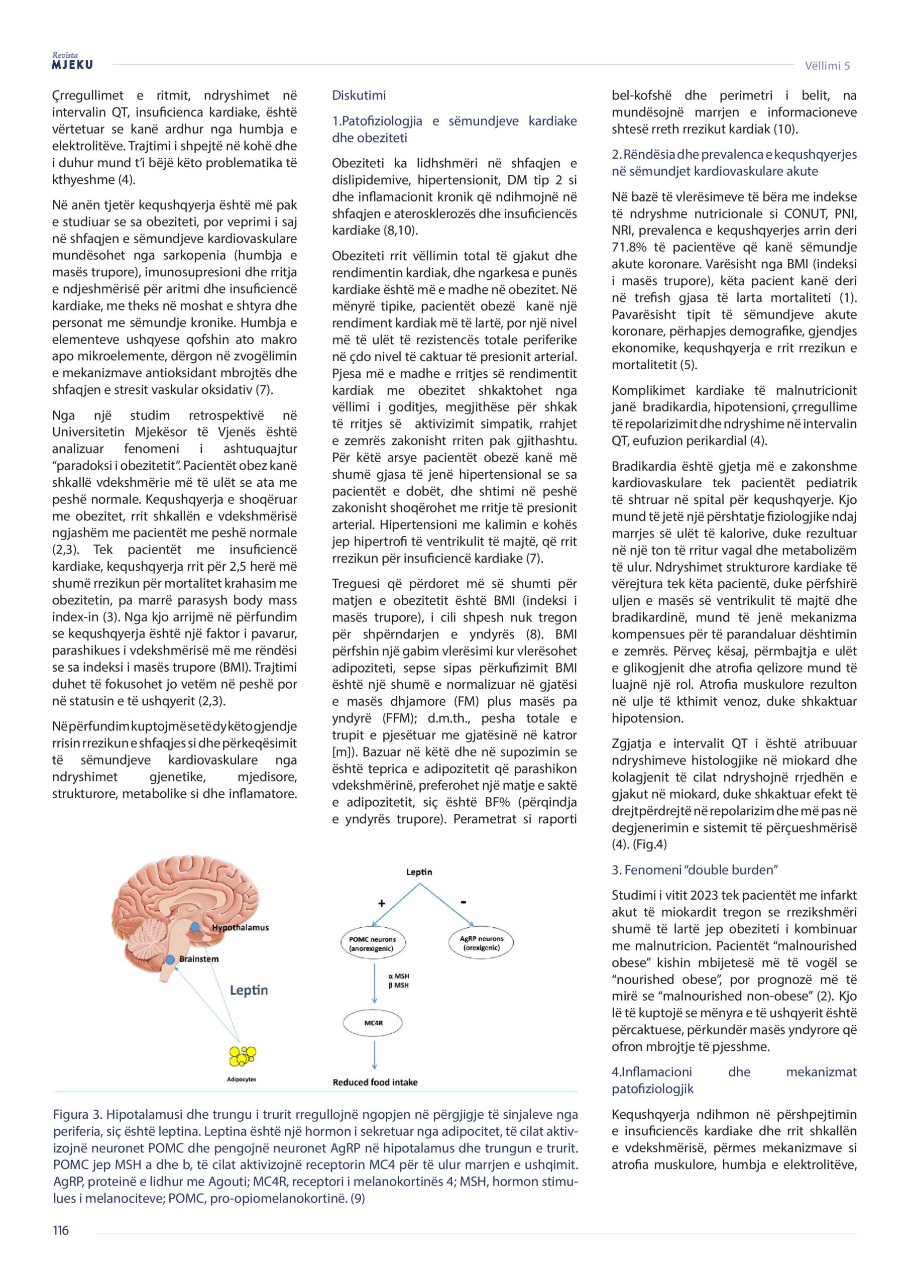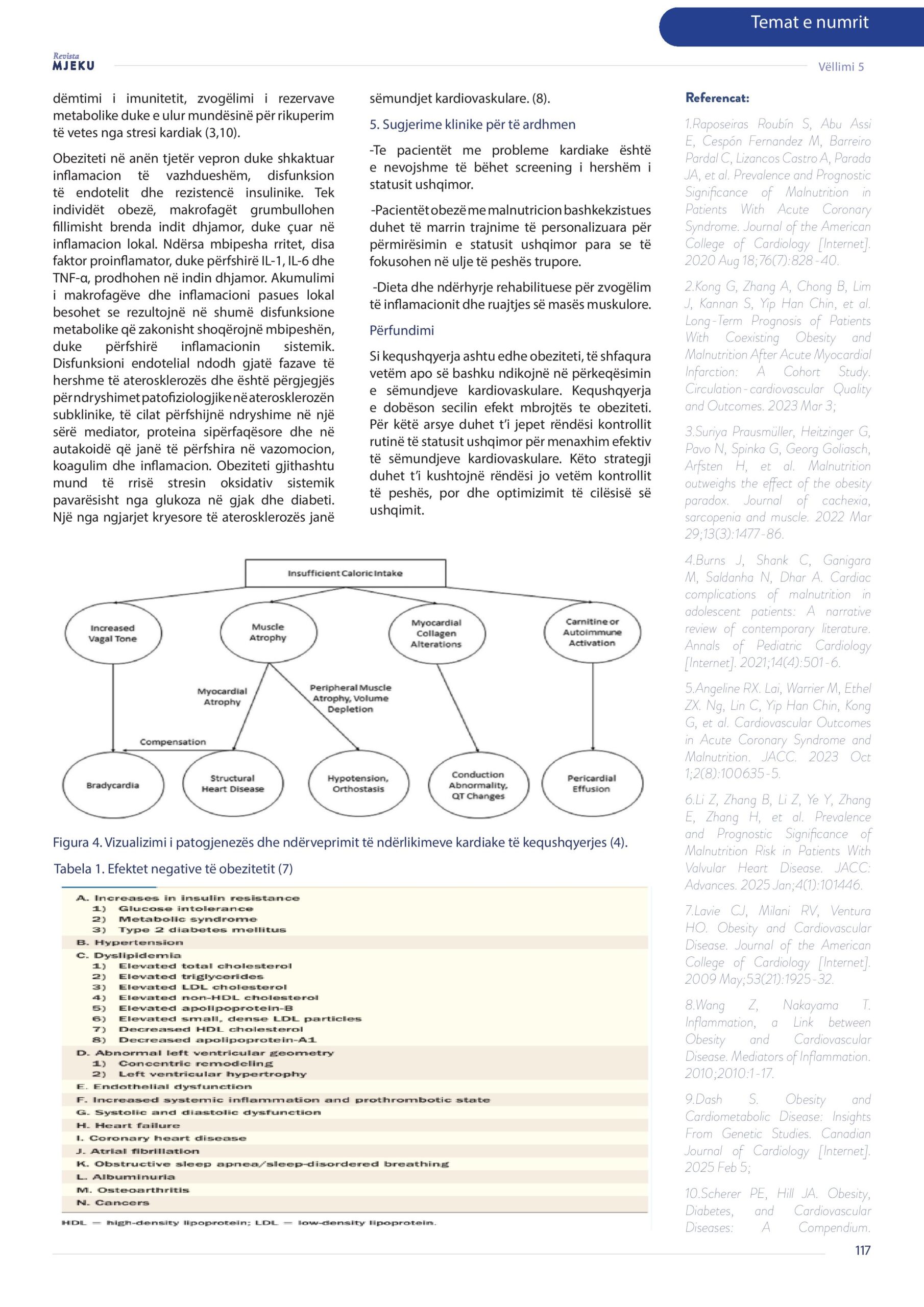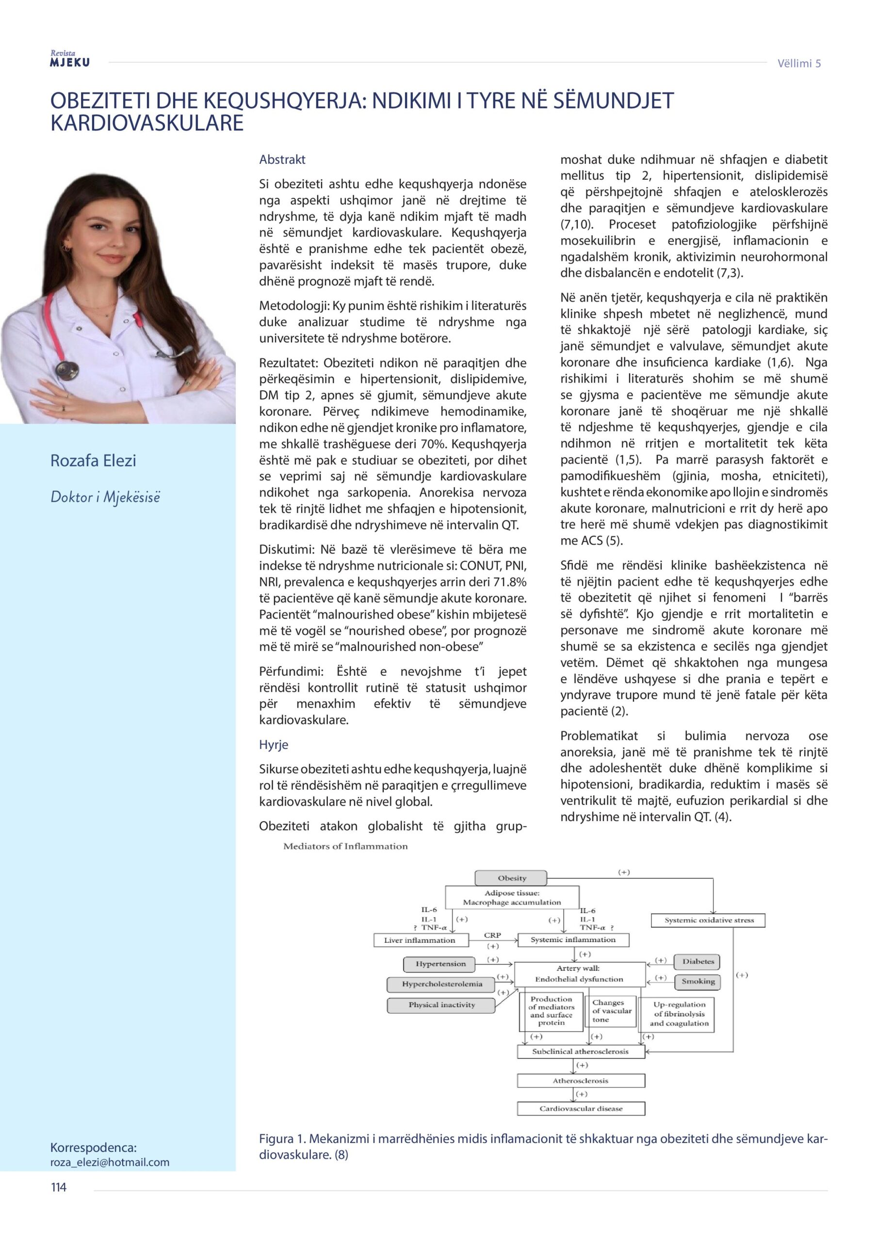 Revista Mjeku, Vëllimi 5, numër 3; Obeziteti dhe kequshqyerja: Ndikimi i tyre në sëmundjet kardiovaskulare, artikull nga Dr. Rozafa Elezi dhe Dr. Xhevdet Duka.