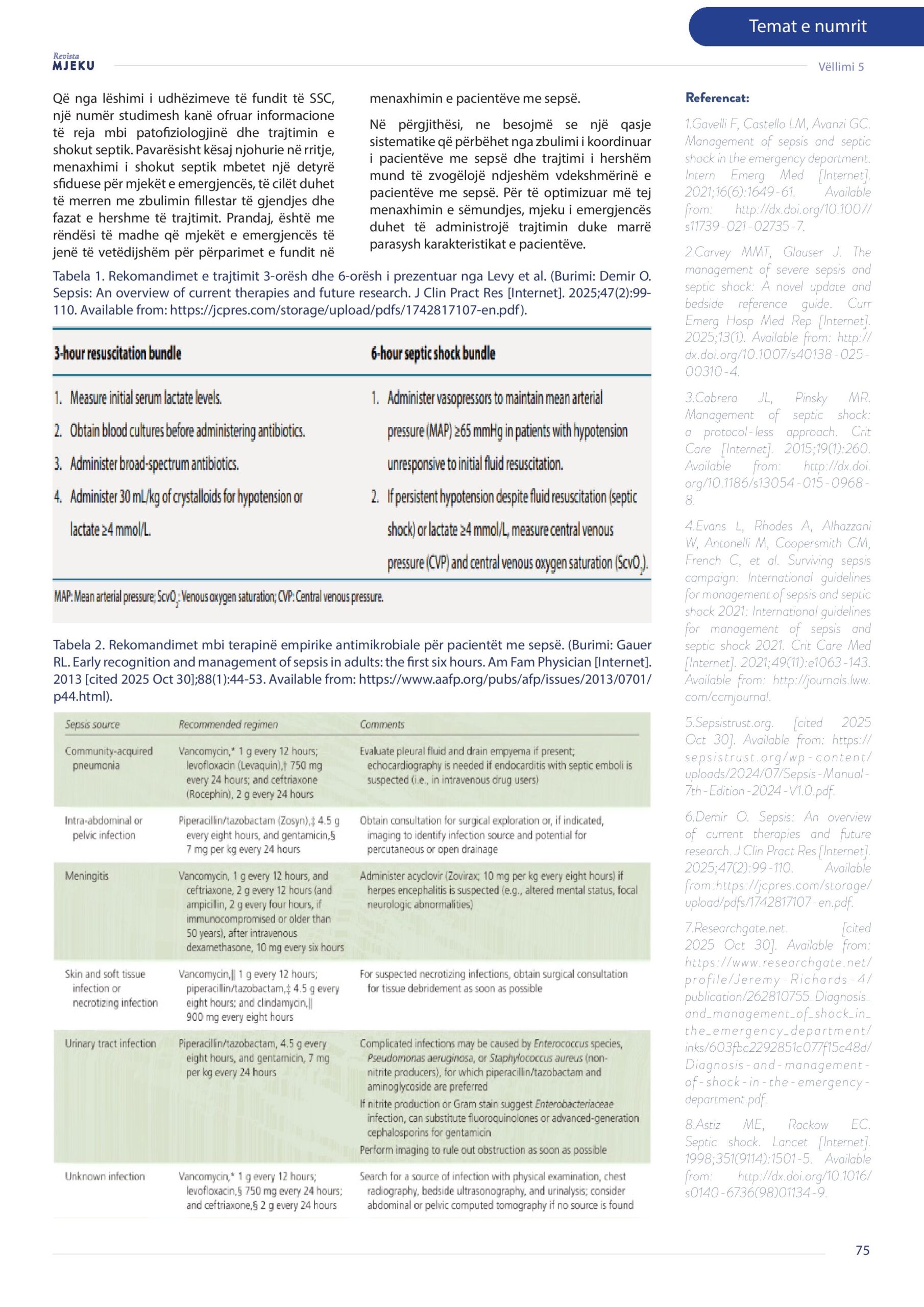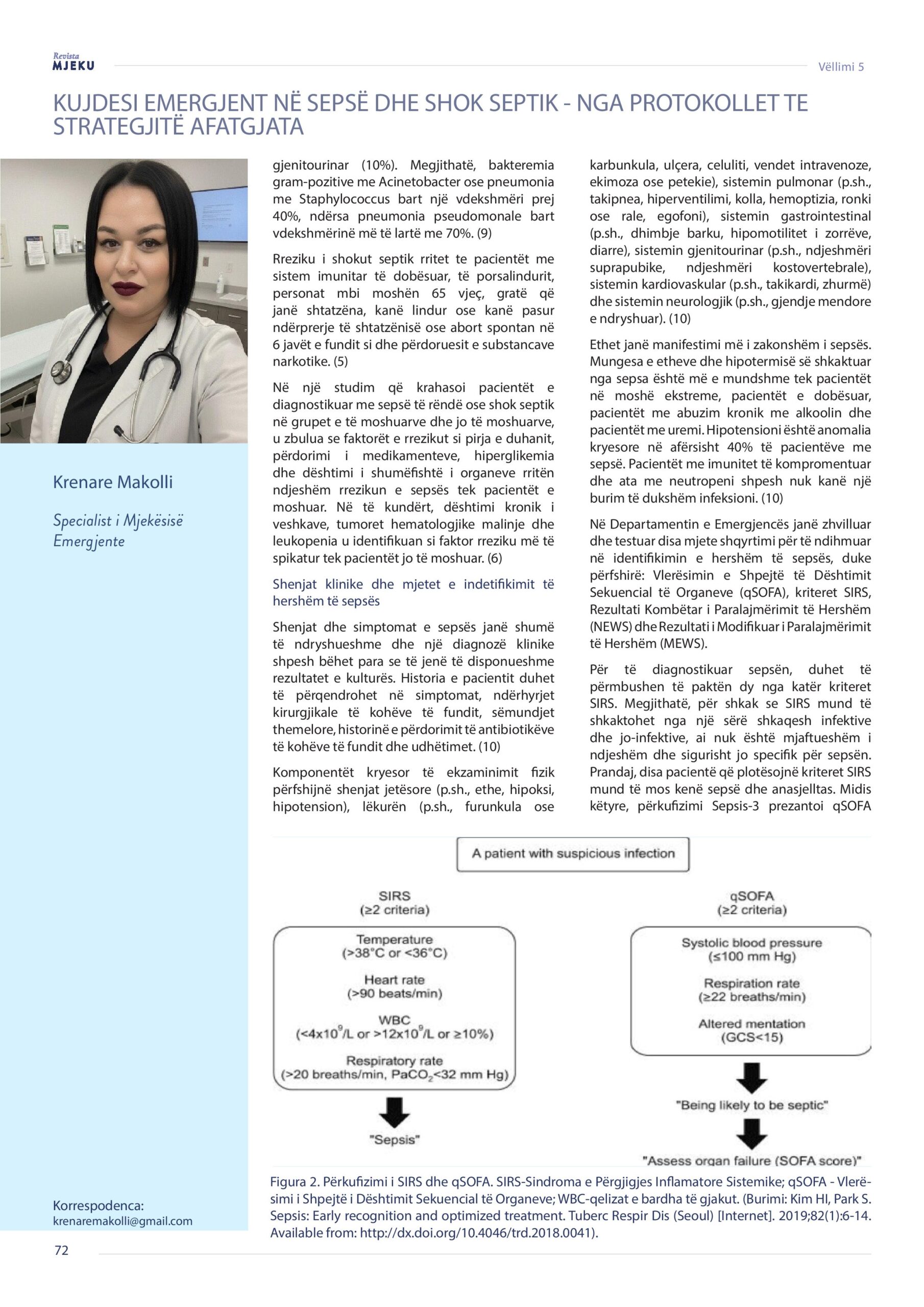 Revista Mjeku, Vëllimi 5, Numër 4; Kujdesi emergjent në SEPSË dhe shok septik – Nga protokollet te strategjitë afatgjata, artikull nga Dr. Rrezarta Begolli dhe Dr. Krenare Makolli.