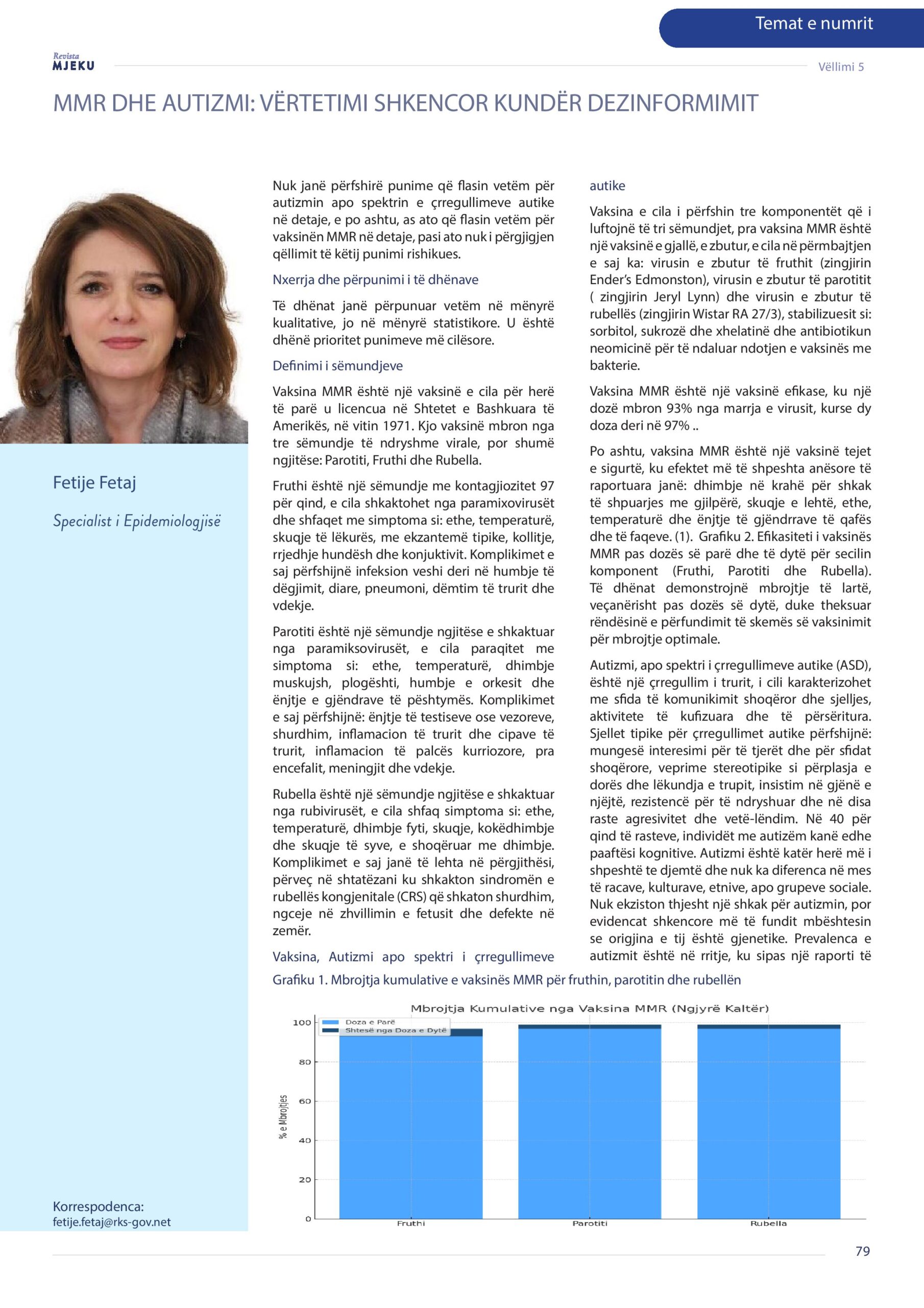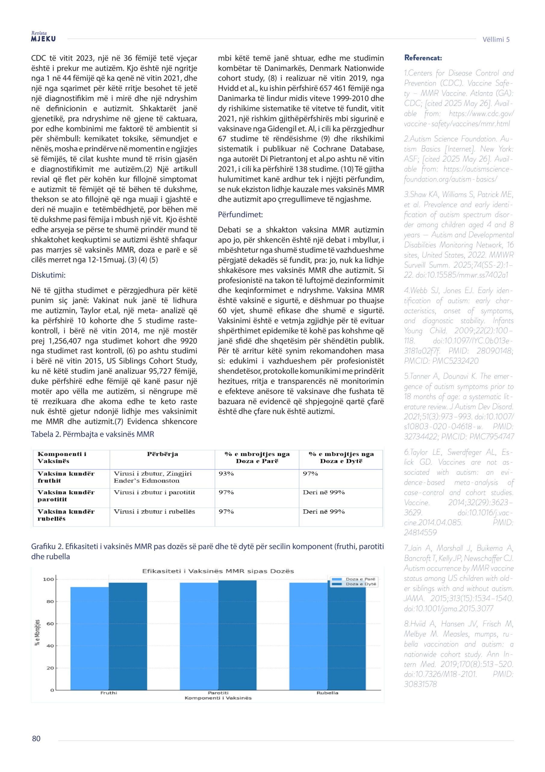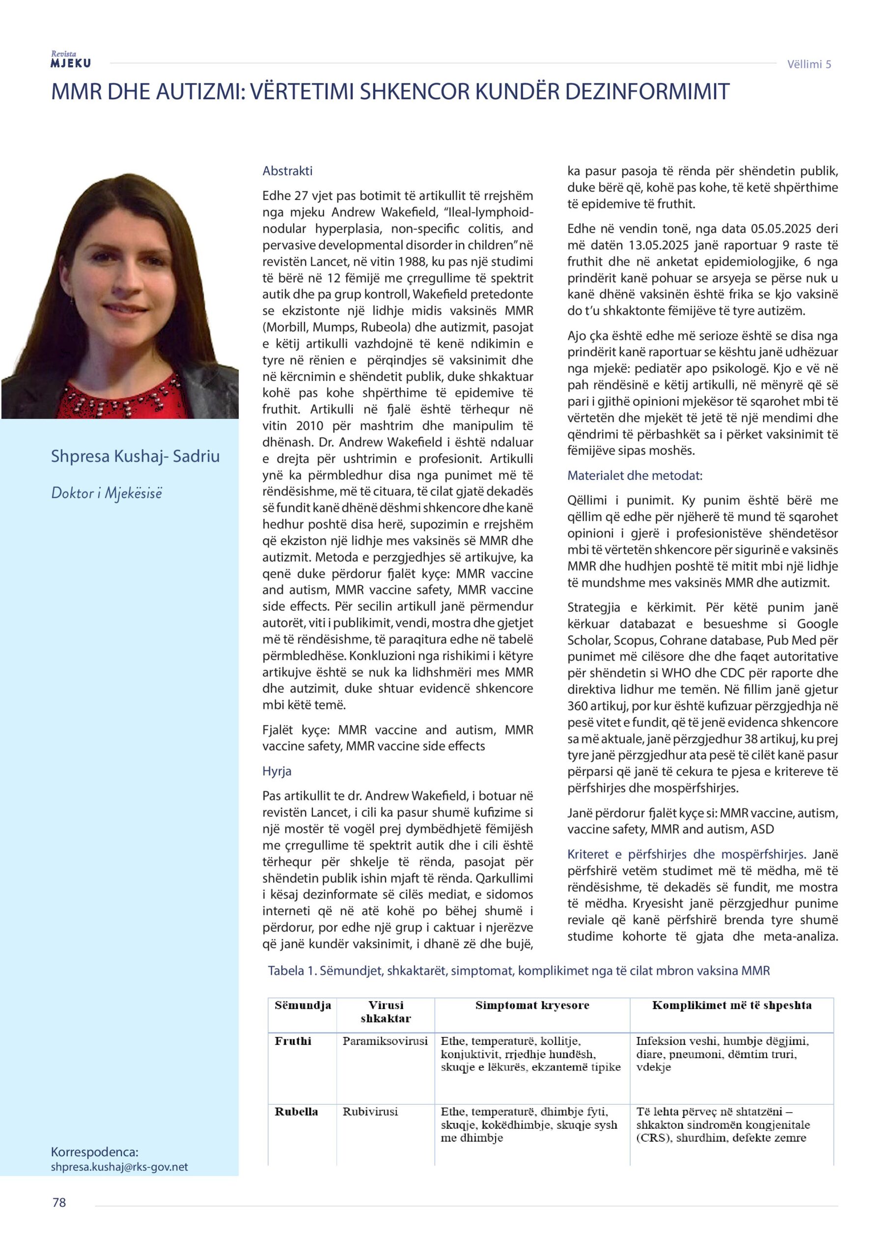 Revista Mjeku, Vëllimi 5, Numër 2; MMR dhe autizmi: Vërtetimi shkencor kundër dezinformimit, artikull nga Dr. Shpresa Kushaj- Sadriu dhe Dr. Fetije Fetaj.