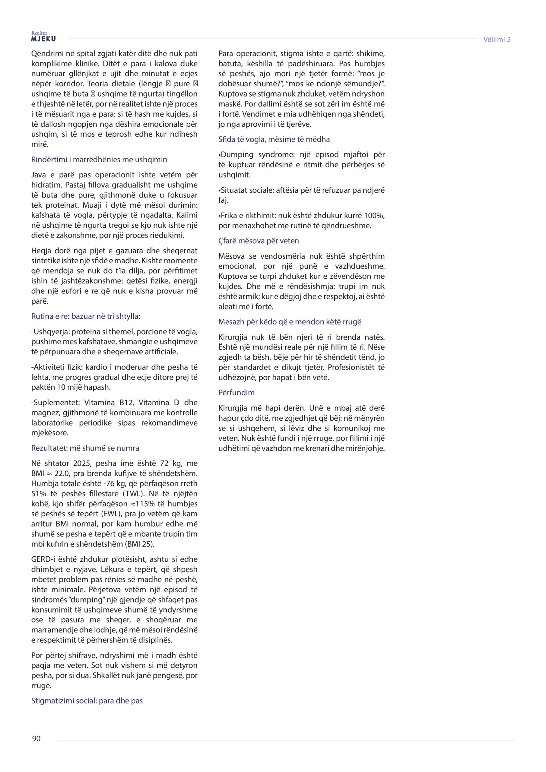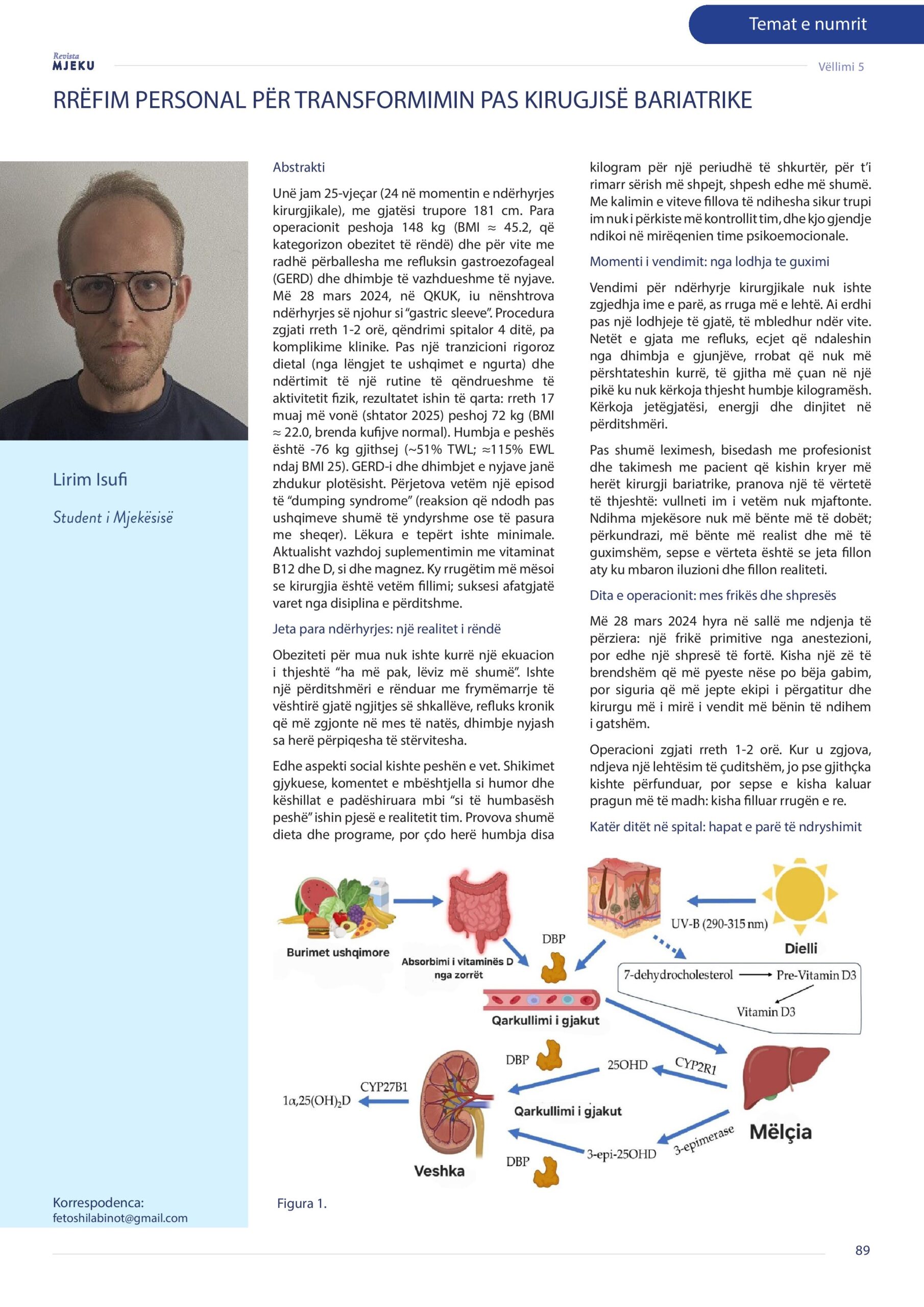 Revista Mjeku, Vëllimi 5, Numër 3; Rrëfim personal për transformimin pas kirurgjisë bariatrike, artikull nga Lirim Isufi.