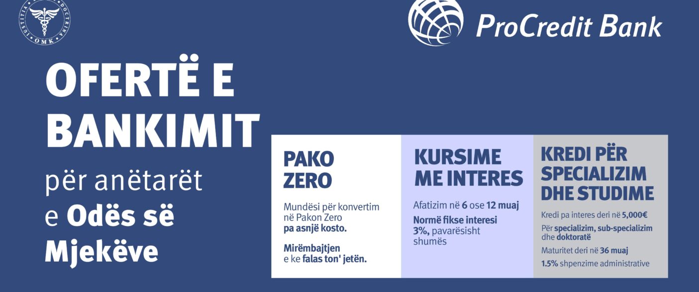 – Pagesa e anëtarësisë vjetore në OMK (100 €) mbulohet nga ProCredit Bank (vlen për një vit).