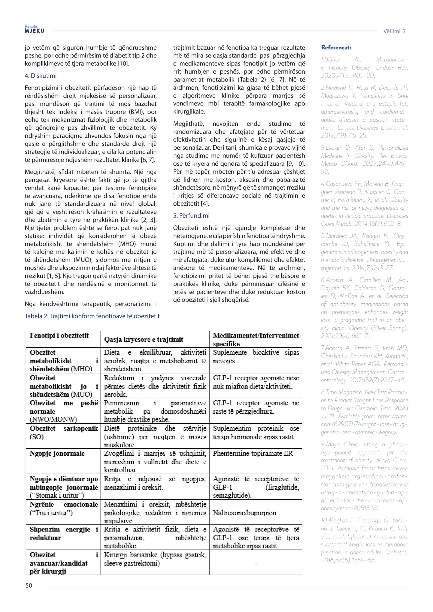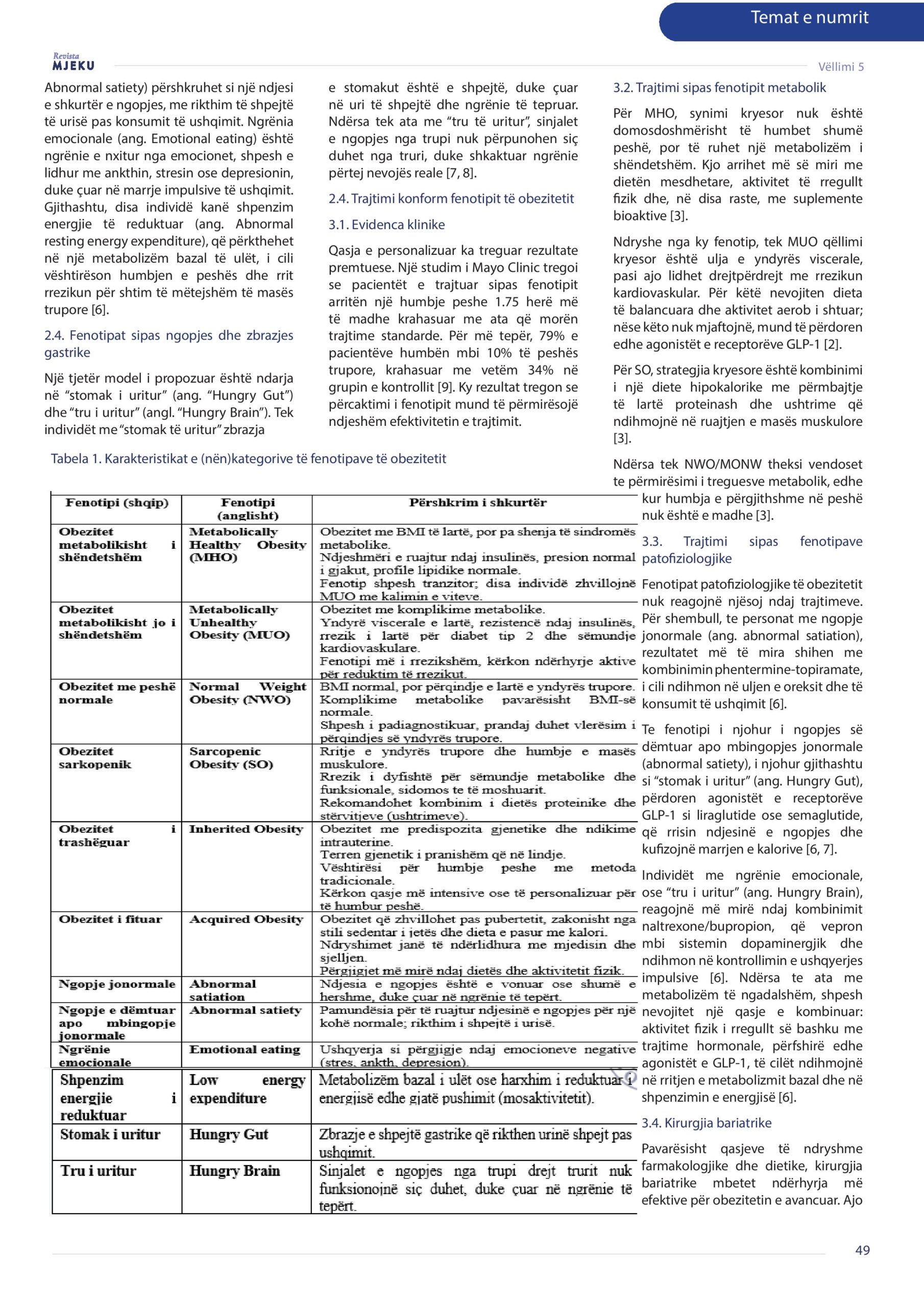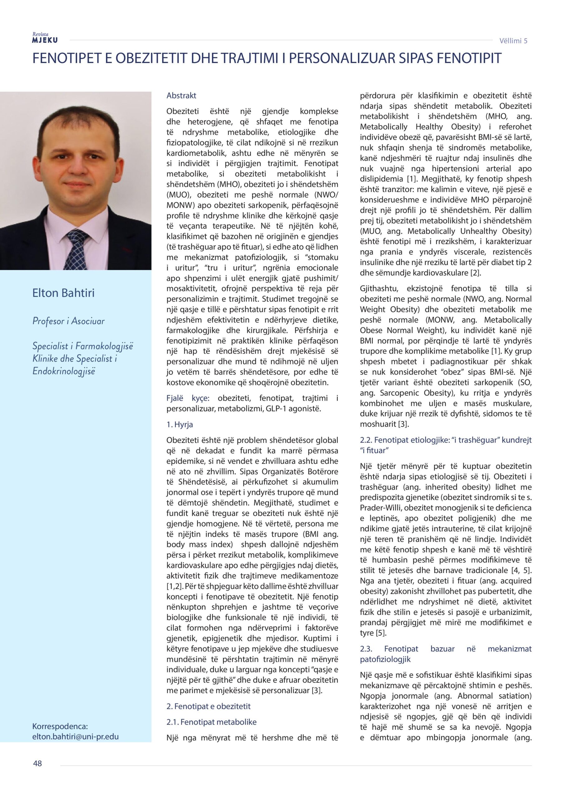 Revista Mjeku, Vëllimi 5, Numër 3; Fenotipet e obezitetit dhe trajtimi i personalizuar sipas fenotipit, artikull nga Prof. Asoc. Dr. Elton Bahtiri.