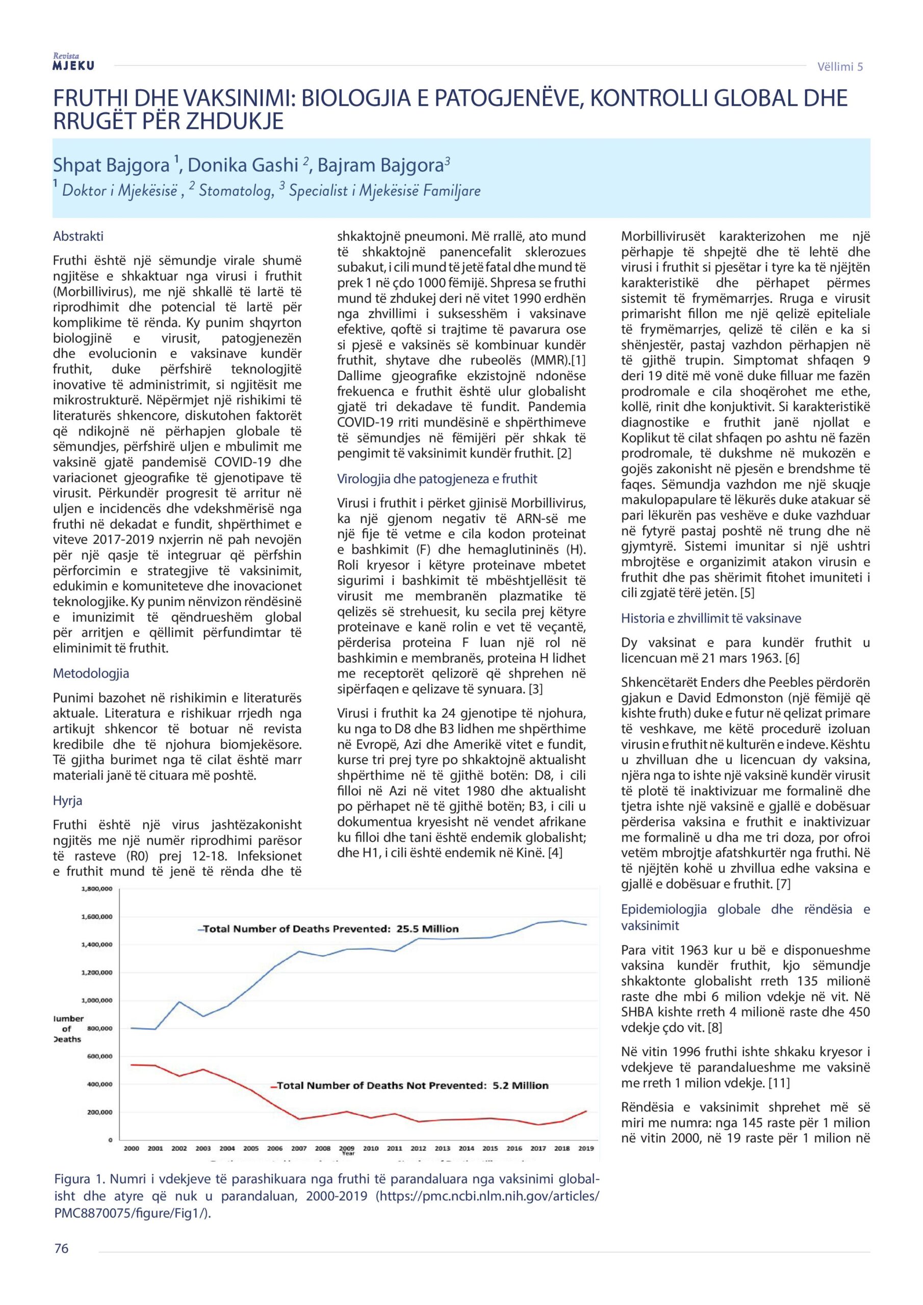 Revista Mjeku, Vëllimi 5, Numër 2; Fruthi dhe vaksinimi: Biologjia e patogjenëve, kontrolli global dhe rrugët për zhdukje, artikull nga Shpat Bajgora, Donika Gashi dhe Bajram Bajgora.