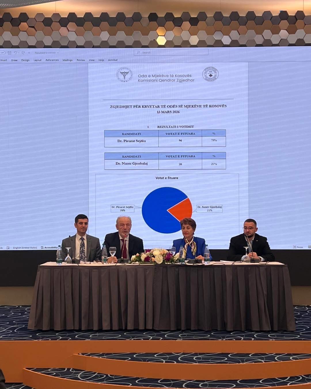 Gjatë kësaj mbledhjeje, pas përfundimit të procedurave të rregullta sipas Kodit Zgjedhor dhe përmes votimit të anëtarëve të Kuvendit, u zgjodh Kryetari i Odës së Mjekëve të Kosovës, Dr. Pleurat Sejdiu.